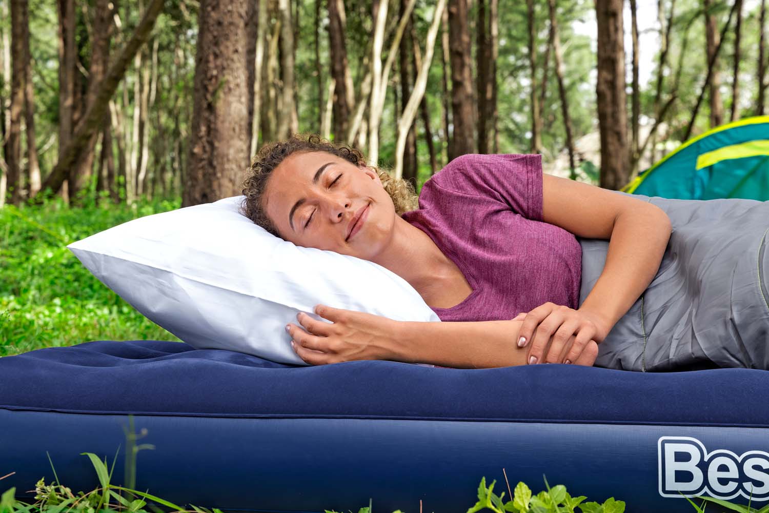 Das Bestway® Luftbett ist sowohl für den Innen- als auch für den Außengebrauch geeignet und daher der daher der perfekte Begleiter für einen Campingurlaub oder nette Ergänzung für das Gästezimmer. Es lässt sich schnell aufblasen und entleeren und ist daher ebenso praktisch wie komfortabel. Langlebige Konstruktion: Das Luftbett bietet den nötigen Komfort für eine erholsame Nacht. Die komfortable, beflockte Schlafoberfläche verleiht diesem in Kombination mit den inneren Träger die Eigenschaften einer Standardmatratze. So entsteht eine formschöne Schlaflösung, welche optimal auf Ihre Körperbewegungen reagiert. Einfacher Aufbau: Dieses Luftbett ist mit einem großen, leicht zu öffnenden 2-Wege-Schnellverschlussventil ausgestattet, das ein schnelles und einfaches Aufpumpen und Ablassen der Luft ermöglicht. Ob Sie unterwegs oder zu Hause sind, dieses Bett lässt sich mit einer Luftpumpe (nicht im Lieferumfang enthalten) in wenigen Sekunden aufpumpen.