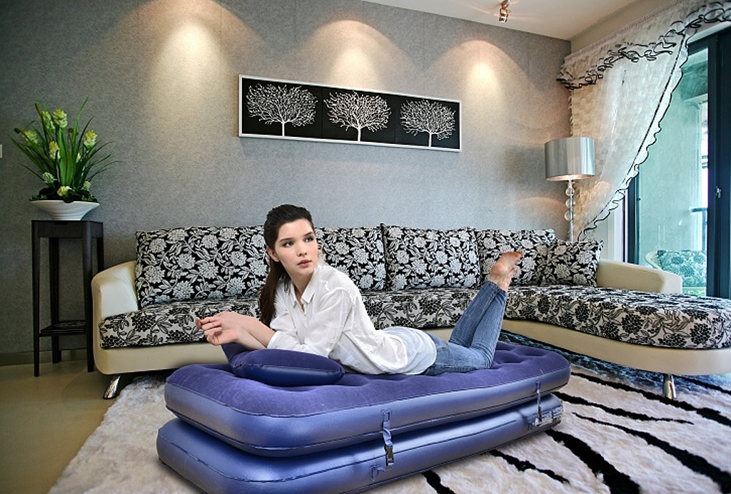 Das 3 in 1 Luftbett besteht aus 2 aufblasbaren Luftmatratzen aus hochwertigem PVC, die sich entweder separat, im Verbund als Doppelbett oder als hohes Einzelbett nutzen lassen. Die Röhrensteg-Konstruktion (Coil-Beam) garantiert ausserordentliche Stabilität. Egal ob für Outdoor-Erlebnisse, Camping, Urlaube, Ferienlager oder im heimischen Schlafzimmer - die Matratzen versprechen höchsten Schlafkomfort. Ausserdem sind sie hautsympathisch, weich und gleichzeitig wasserabweisend. Im Lieferumfang enthalten sind ausserdem 2 aufblasbare Kissen.