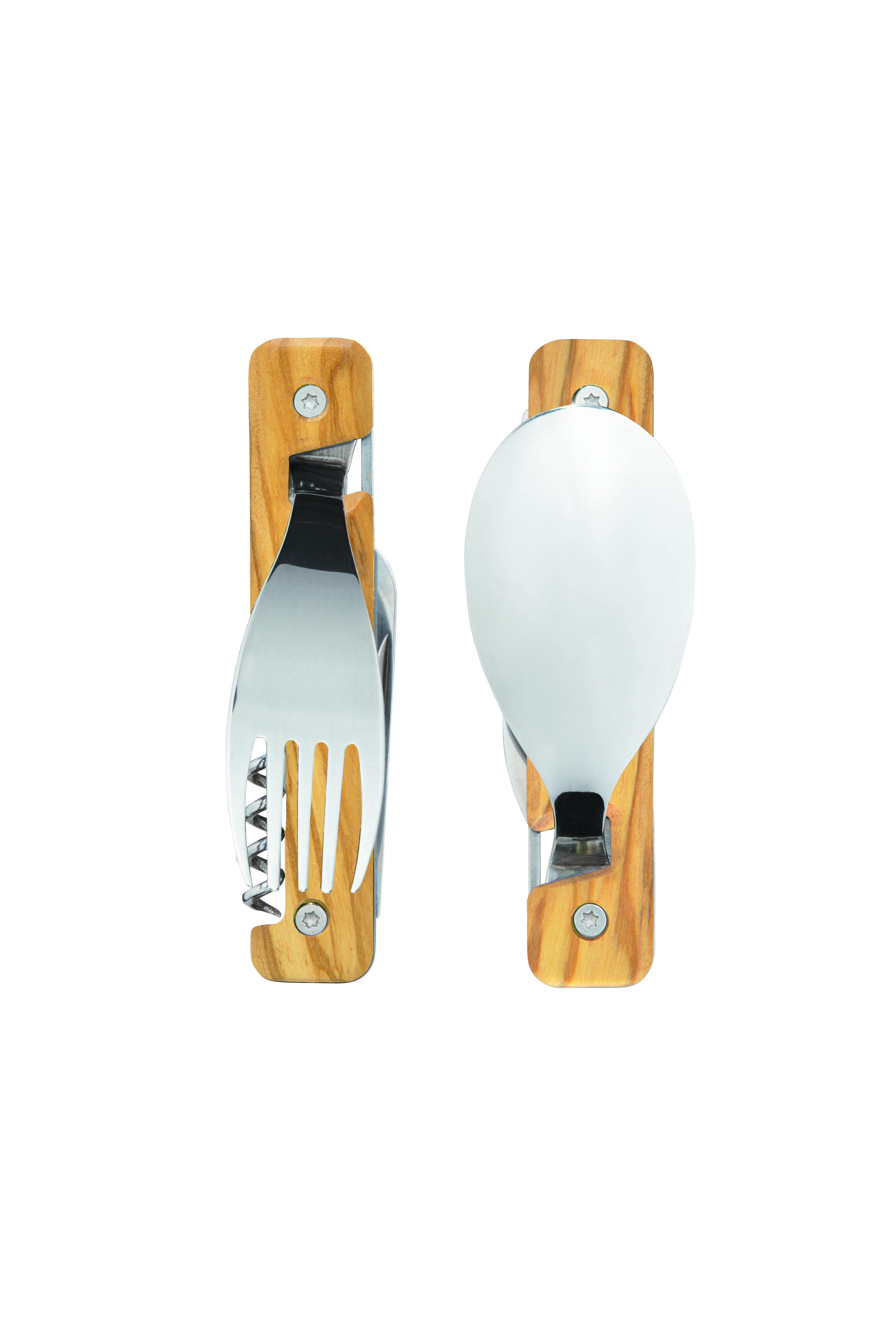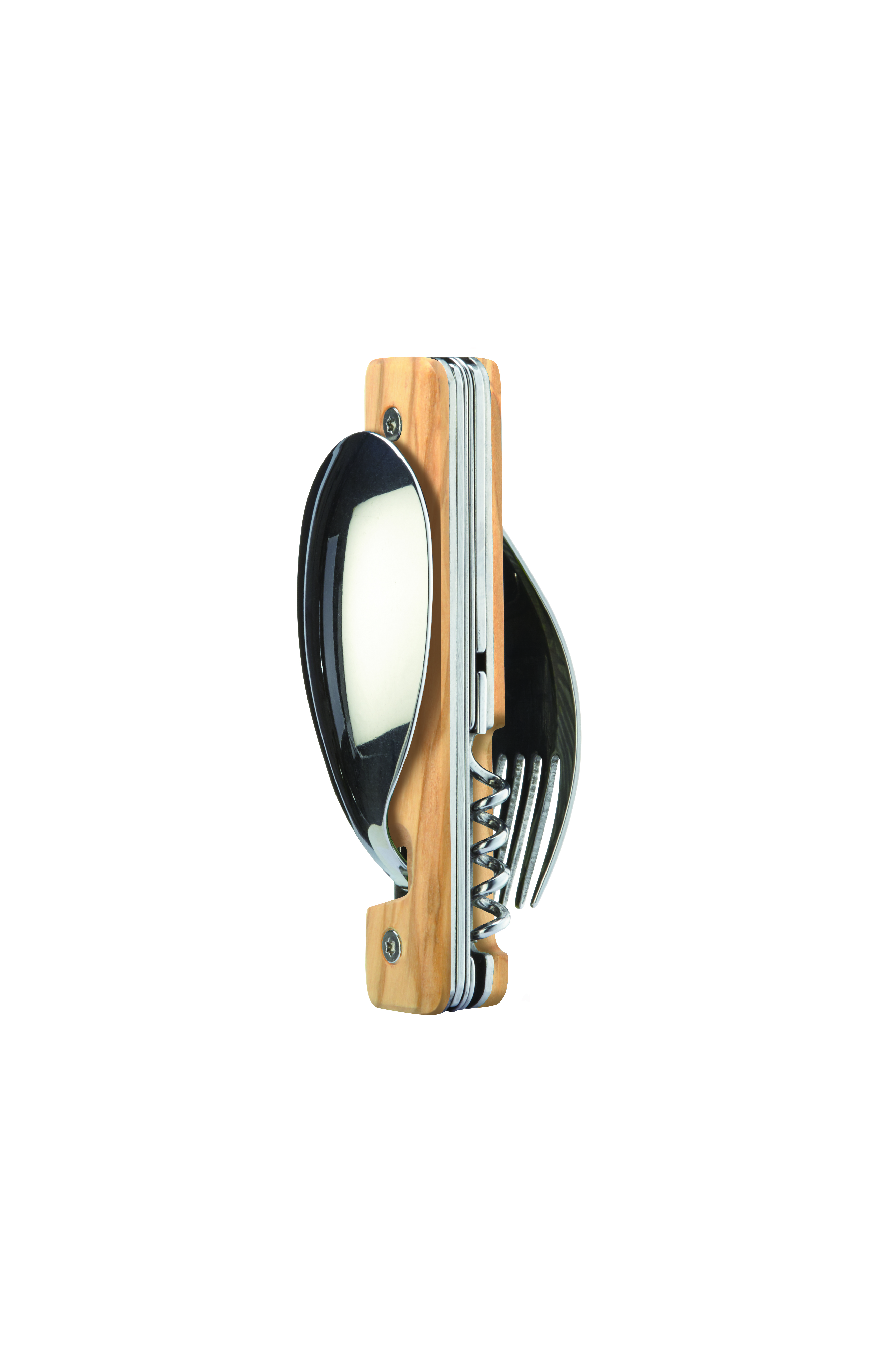 AKINOD - Besteckset faltbar 13H25, Hochglanz Poliert, Olivenholz
