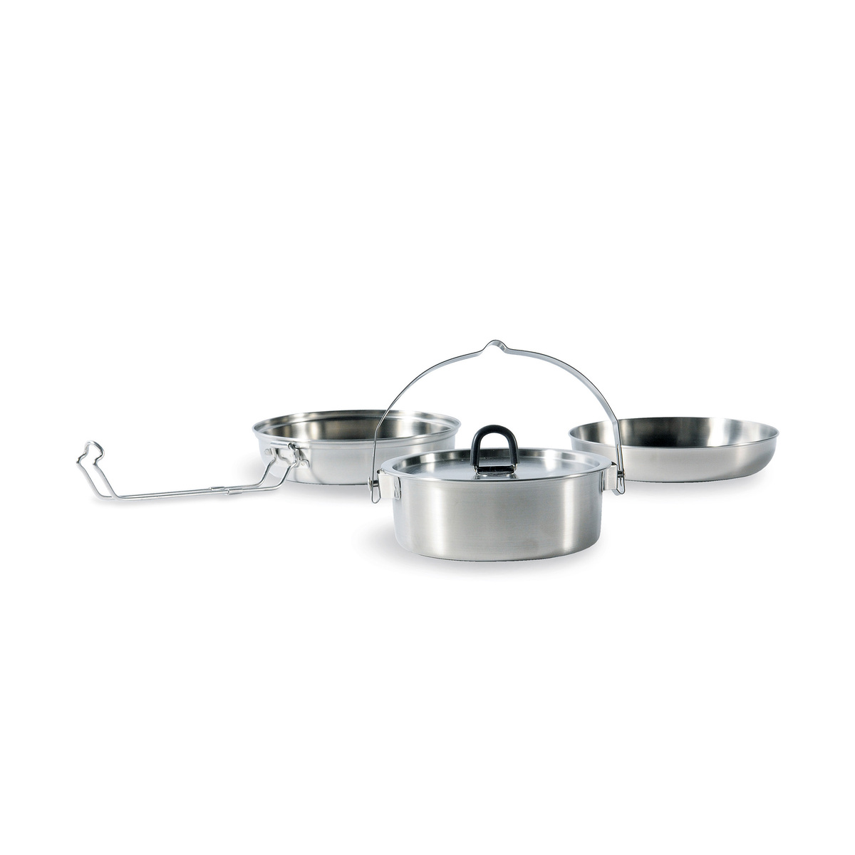Platzsparendes Kochset aus Edelstahl: Tatonka Camp Set Regular
