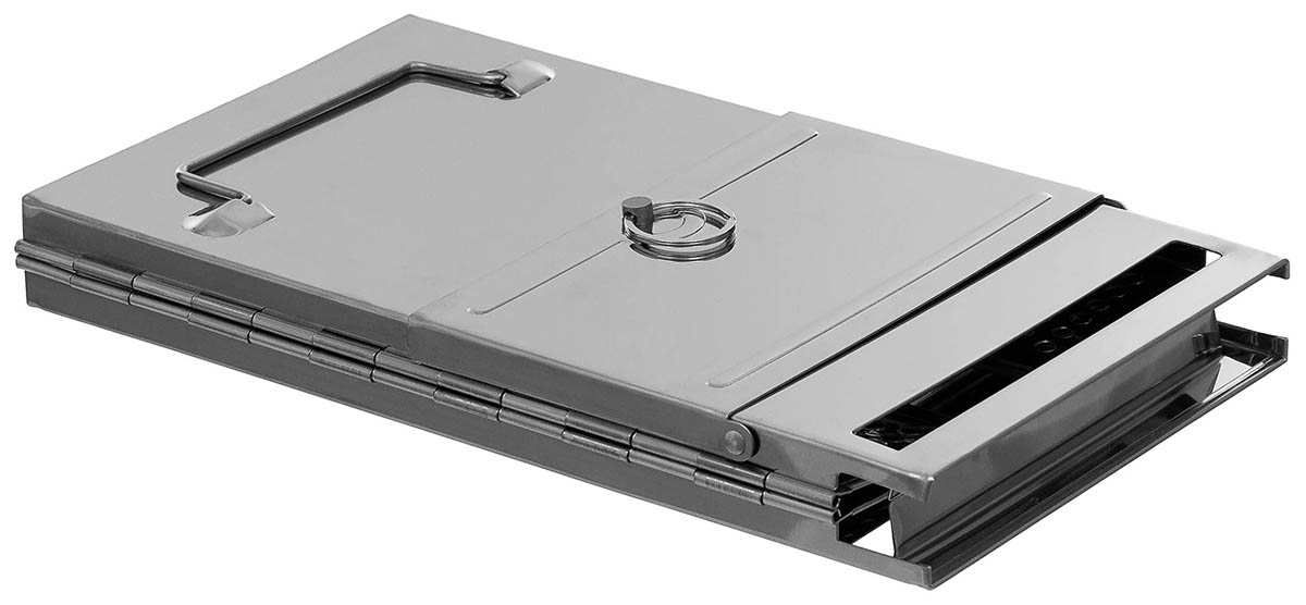 geeignet für Festbrennstoffe kompakt verstaubar schneller Aufbau durch Faltmechanismus ausklappbares Bodengitter herausnehmbares Ascheblech Grillrost grosse Frontklappe mit Arretierung Belüftungsöffnungen für Kamineffekt 2 Klappgriffe Transporttasche Packmass: ca. 35 x 20 x 4,5 cm (H x B x T) Masse aufgebaut: ca. 35 x 20 x 20 cm (H x B x T) Gewicht: ca. 2,7 kg