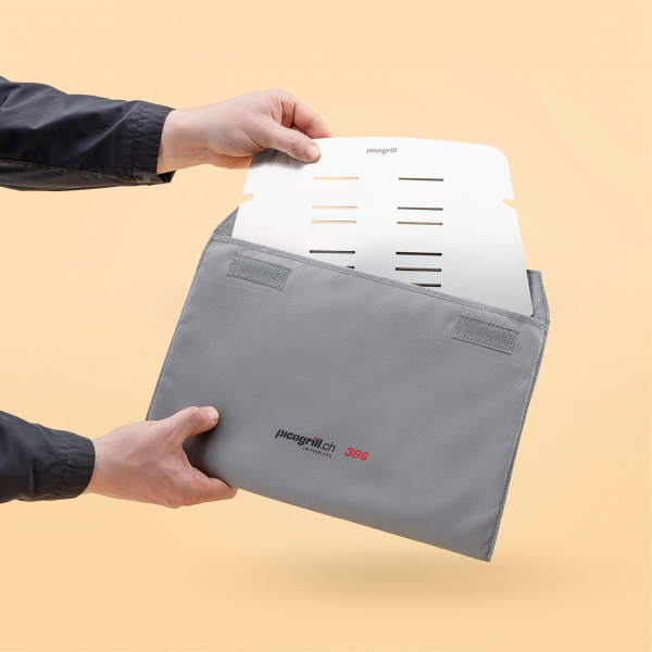 Leichte, kleine Grillschale für den Rucksack, die Fahrradtasche oder den Balkon.  swiss made.