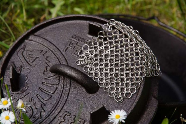 Dieses hochwertige und strapazierfähige Utensil aus Edelstahl reinigt mühelos Gusseisen, Schmiedeeisen und Edelstahl ohne die wertvolle Patina zu beschädigen. Das Kochgeschirr einfach abkühlen lassen und mit warmem Wasser schonend die angebrannten Essensreste abreiben. Spülmittel wird nicht benötigt. Nach dem Säubern nochmals abspülen und vor dem Verstauen gut abtrocknen, sonst ist Kontaktkorrosion möglich.