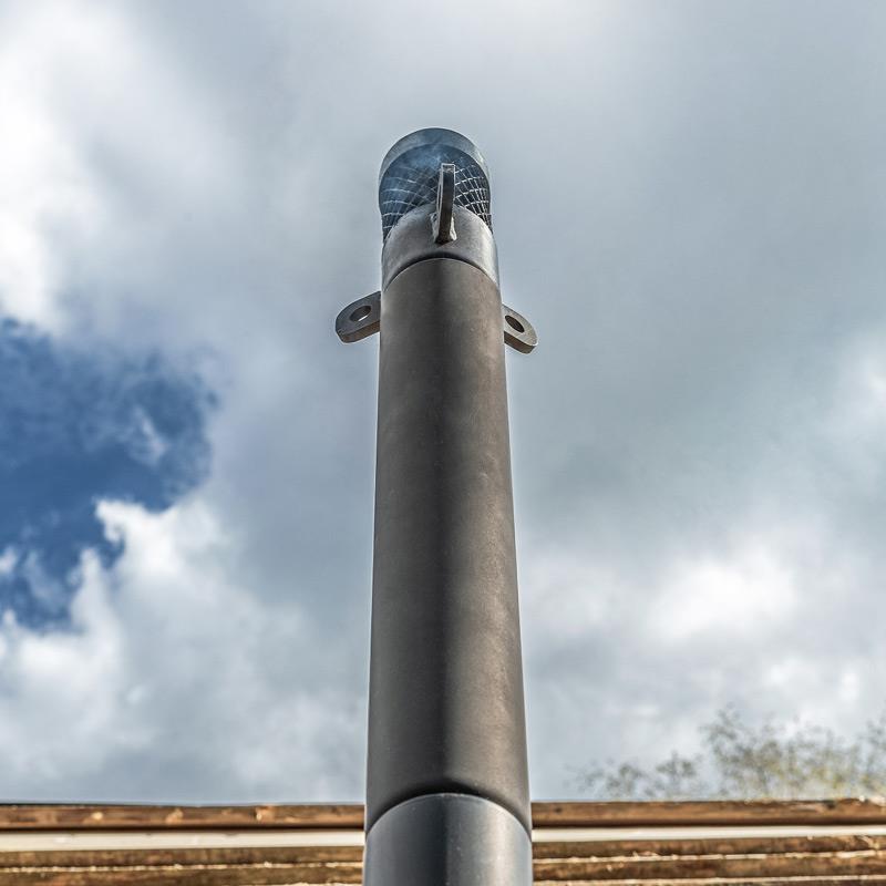 Der Funkenfang sichert sowohl Zelt oder Tipi als auch die Umgebung vor Funkenflug. Als Abschluss des Petromax Loki2 wird der Funkenfang auf das Ofenrohr aufgesteckt. Die durch den Abluftzug aufsteigenden Glühteilchen und Funken verlöschen am Metallgitter des zylindrischen Korpus. Zudem schützt der Funkenfang zusätzlich vor eindringendem Niederschlag in das Ofenrohr bei Regen. Mittels der angebrachten drei Ösen wird der Funkenfang am Zelt / Tipi selbst, oder aber am Boden fixiert. Das verleiht der Konstruktion extra Halt auch bei starkem Wind.