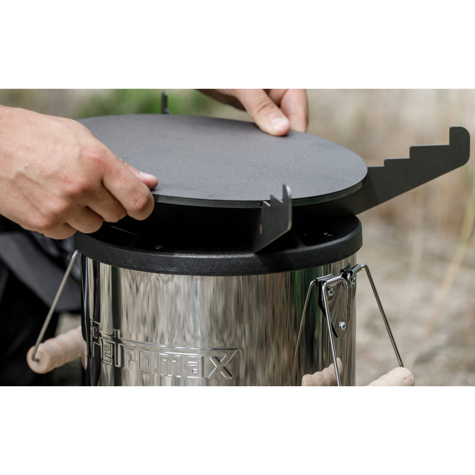 Die Raketenofen Grillplatte ist die beste Erweiterung für den Raketenofen, die ihn zu einer hochleistungsfähigen Grill- und Kochstation macht.