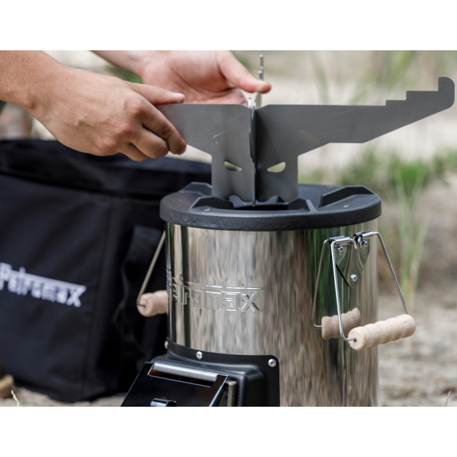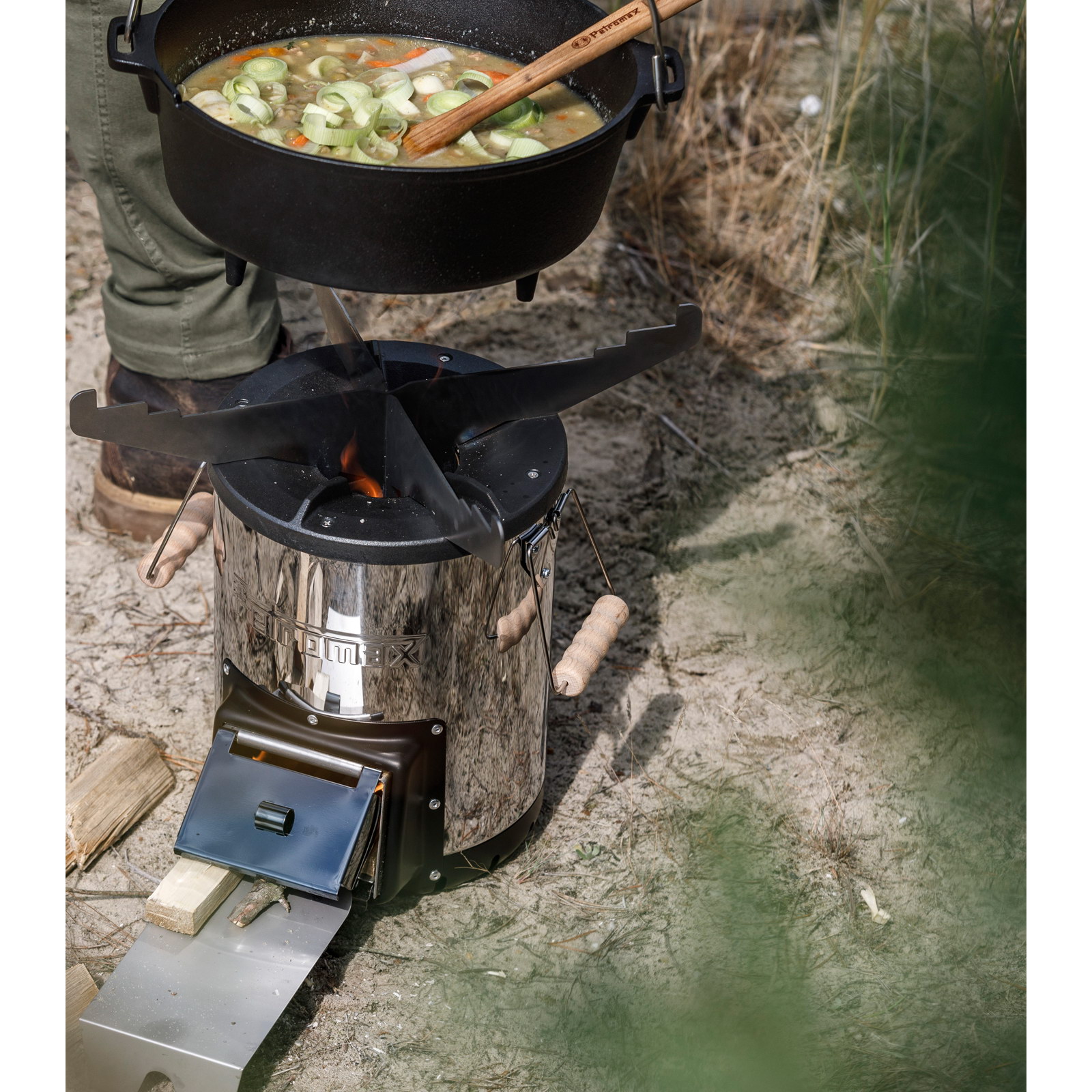 - steckbares Kochkreuz: noch vielfältigere Nutzung des Raketenofens mit Dutch Oven