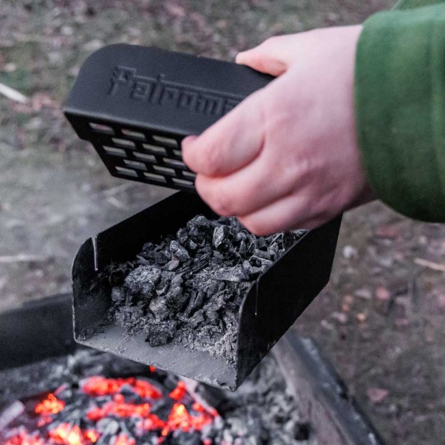Durch das einsetzbare Sieb werden nach dem Kochen und Grillen an der Feuerstelle die noch unverbrannten Kohlen von der Asche getrennt und können so beim nächsten Kochabenteuer unter freiem Himmel wiederverwendet werden. Die Reinigung von Grill, Feuerschalen und anderen Feuerstellen wird mit der Kohlenschaufel zu einer sauberen Angelegenheit.