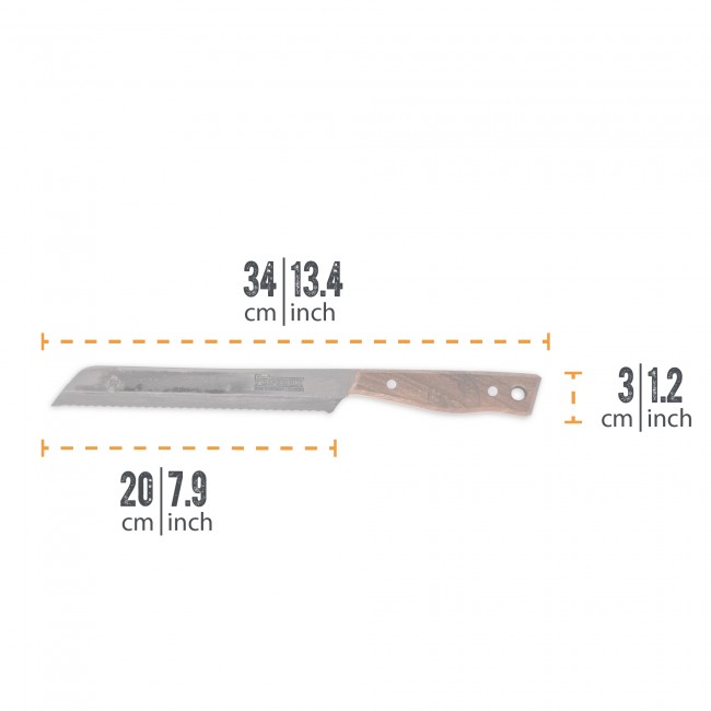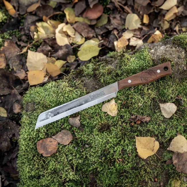 Der Griff des Petromax Brotmessers ist aus hochwertigem Walnussholz gefertigt und liegt hervorragend in der Hand. Der durchgehende Stahl und der vernietete Griff gewährleisten eine sichere und komfortable Handhabung. Dieses Messer wurde speziell für die Bedürfnisse und Ansprüche von Outdoor-Köchen entworfen und in Solingen mit höchster Sorgfalt gefertigt.