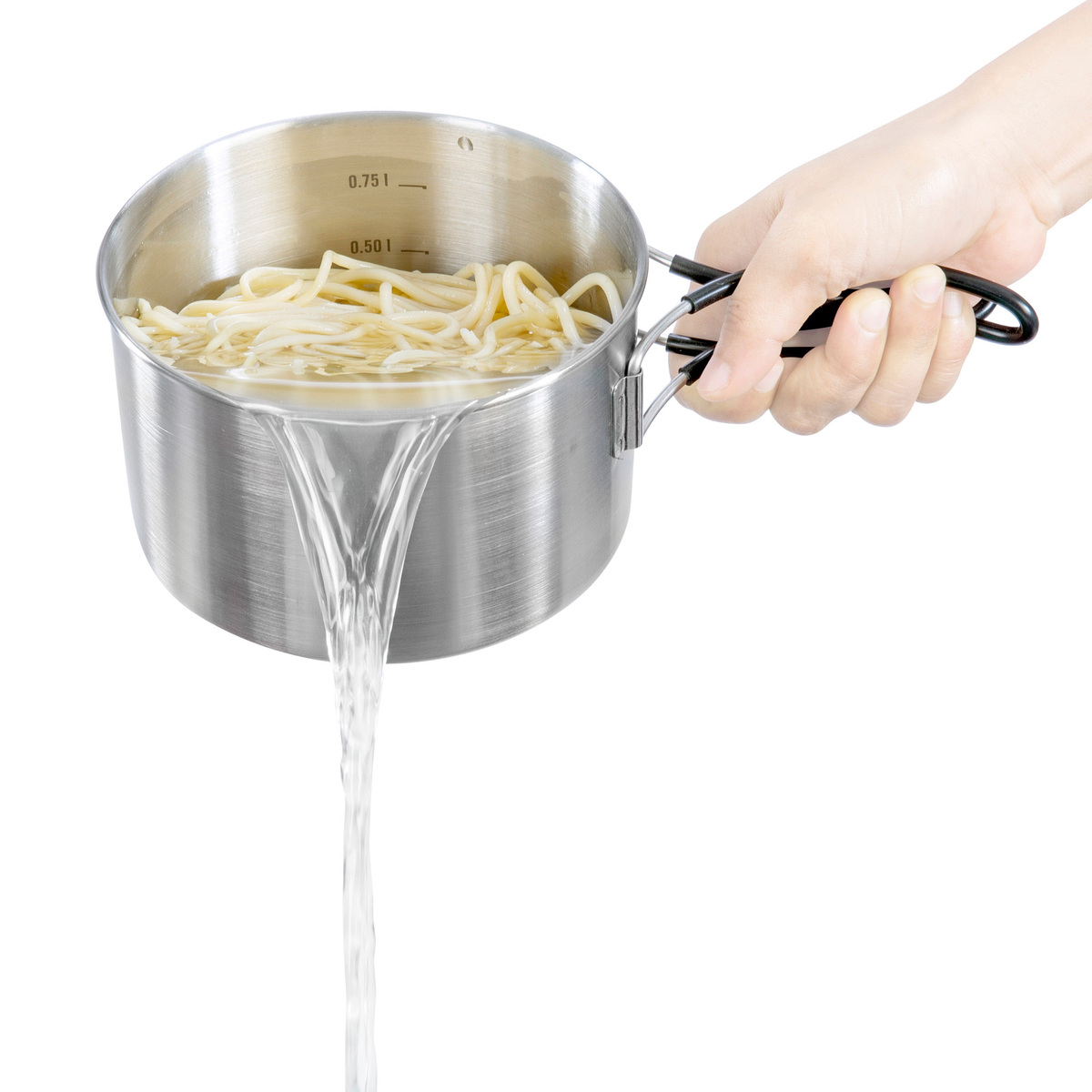 Der Deckel dieses Kochtopfs ist mit Löchern versehen, so dass man Kochwasser ganz leicht abgiessen kann. Auch sehr praktisch: Im Innern befindet sich eine Volumenskalierung, so dass Zubereitungsvorgaben für Outdoor-Gerichte präzise eingehalten werden können.