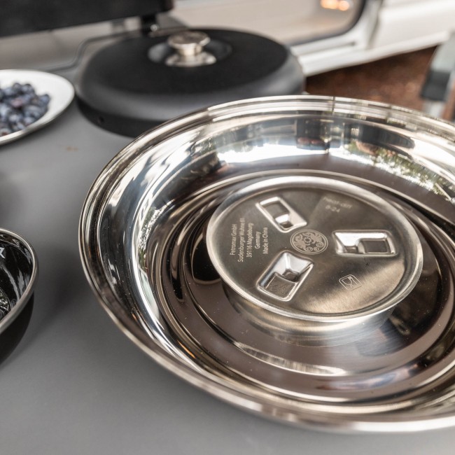Erlebe optimale Hitzeverteilung mit dem passgenauen Hitzeverteiler für die Petromax Camping Backöfen "Camp-Oven" und "Dimego-Oven26". Dieser hochwertige Edelstahleinsatz sorgt für eine optimale Hitzeverteilung und leitet die Hitze gleichmäßig von der Mitte nach außen – ideal vor allem bei besonders kleinen Brennern, um optimale Kochergebnisse zu gewährleisten.