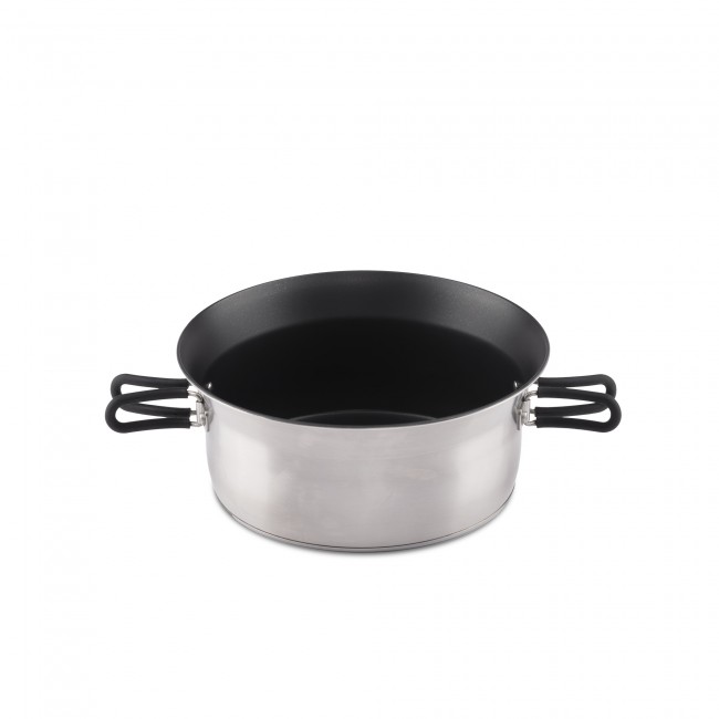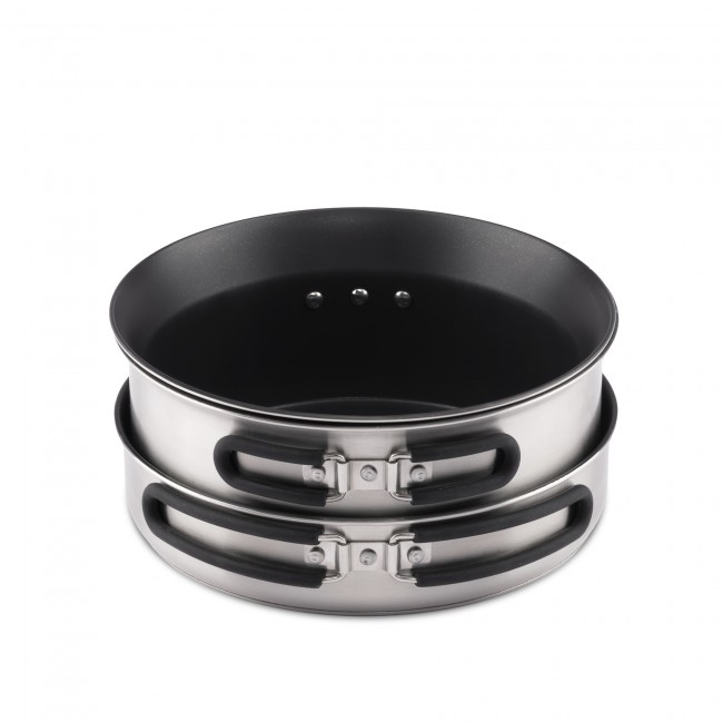 Die wärmeisolierten Griffe bieten einen sicheren Halt, während der Deckel des Sets über eine praktische Ausgießhilfe verfügt, die das Servieren deiner Gerichte vereinfacht. Mit dem im Set enthaltenen Transportband werden die Töpfe sicher zusammengehalten, egal ob du auf Reisen bist oder sie im Rucksack verstauen möchtest.