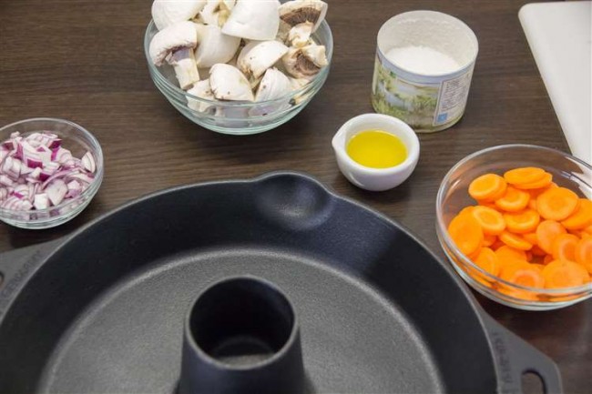 gleichzeitige Zubereitung von Geflügel und Gemüse