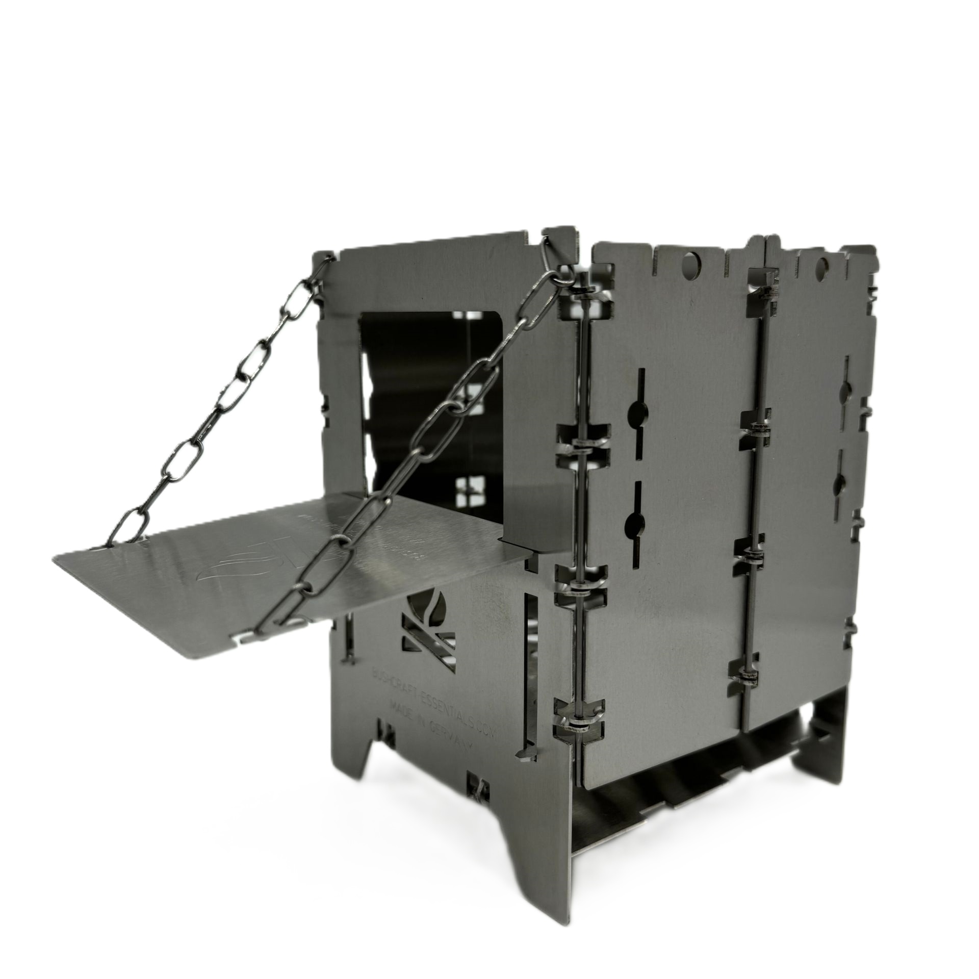 Mit Hilfe der Holzrutsche kannst Du noch komfortabler kochen und Dein Feuer genießen, denn das Feuerholz rutscht von allein immer wieder nach unten in den Brennraum Deiner Bushbox LF. Fortwährendes Nachlegen entfällt, denn Du kannst gleich zu Beginn längere Äste oder Holzscheite einlegen und Dich so ganz aufs Kochen konzentrieren oder das Flammenspiel in aller Ruhe genießen.