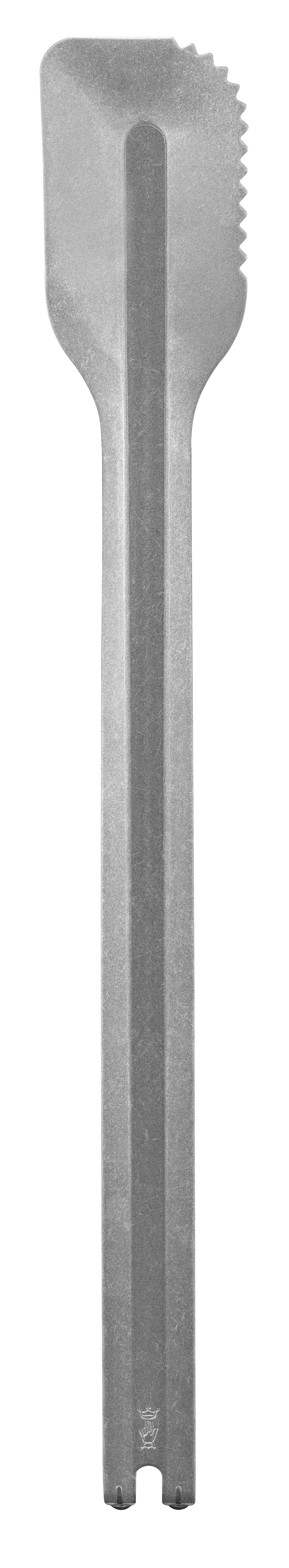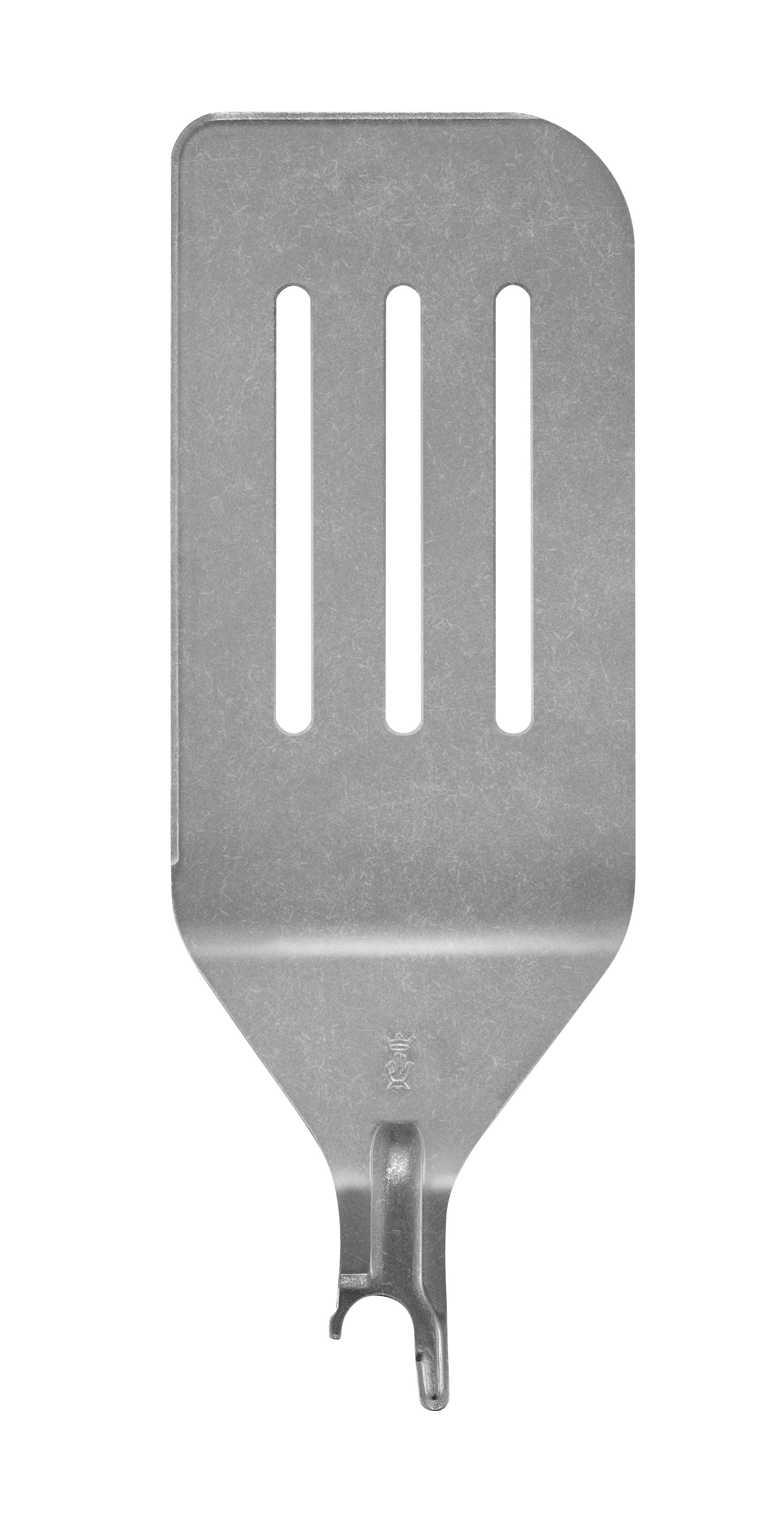 Der Pfannenwender +: Der Pfannenwender aus Edelstahl mit Stonewashed-Finish wird auf den Griff des Messers Nr. 12 B gesteckt und mit dem Ring arretiert. Die große Oberfläche (8,5 cm x 20 cm) ermöglicht ein schnelles Aufnehmen von Lebensmitteln. Er hat einen schmalen Winkel und eine abgeschrägte Kante auf beiden Seiten zum Trennen oder Schaben.