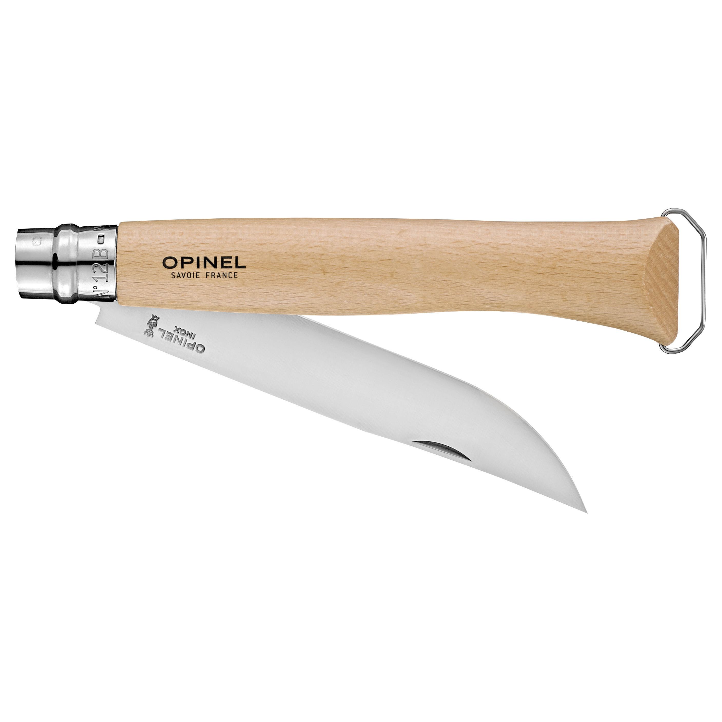 Das Klappmesser Nr. 12 B: eine neue Messergröße mit einer 16 cm langen Klinge aus rostfreiem Stahl und einem Griff aus robustem Buchenholz aus französischen Wäldern. Es ist mit einem Virobloc-Sicherungsring ausgestattet, der die Arretierung der Klinge in geöffneter oder geschlossener Position ermöglicht. Zudem verfügt es über einen Flaschenöffner am Griffende, mit dem man Flaschen öffnen, aber an dem man auch das Messer aufhängen kann.