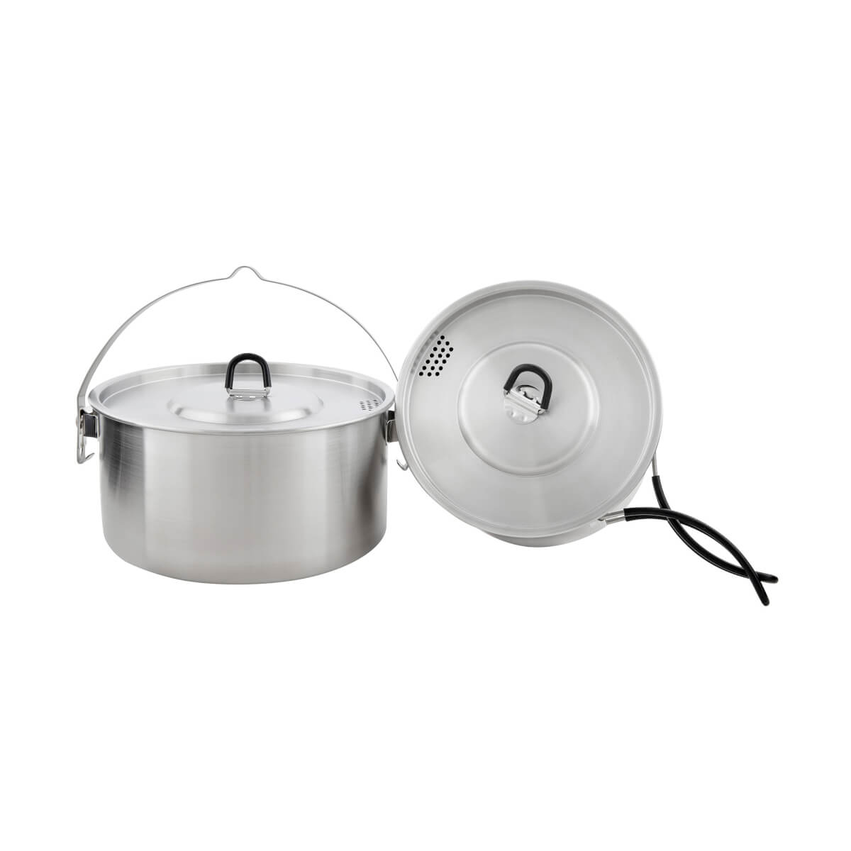 Töpfe, Pfannen und Geschirr aus rostfreiem 18/8 Edelstahl kommen den wechselnden Anforderungen an eine Outdoor-Küche hervorragend entgegen. 18/8 Edelstahl ist sehr robust, langlebig, lebensmittelecht und läßt sich sehr gut reinigen.