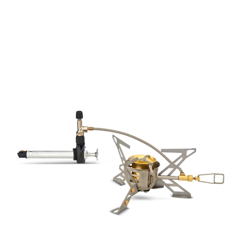 Für den Betrieb mit Flüssigbrennstoff empfiehlt sich die separat erhältliche Fuel Bottle Red – in verschiedenen Größen, für optimale Leistung und einfachen Transport. Ergänze deinen OmniFuel Stove mit dem PrimeTech Pot Set 1.3L und dem PowerLighter, der bei jedem Wetter zuverlässig zündet.