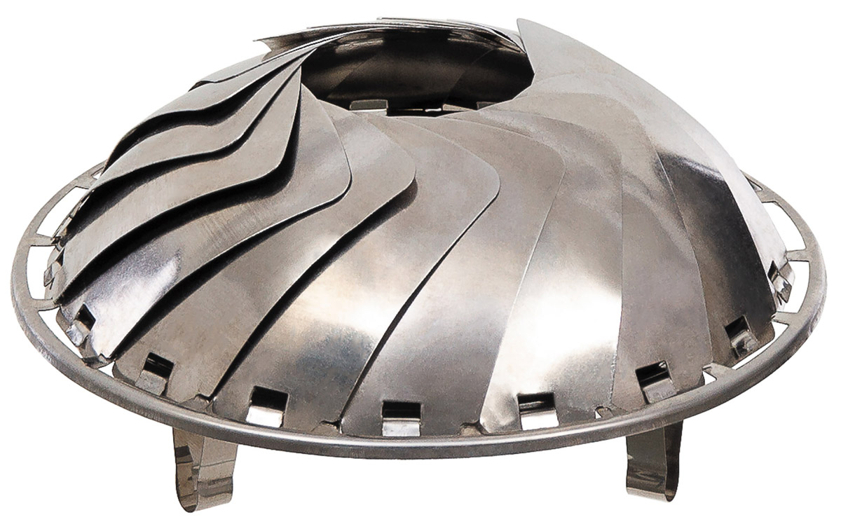 sichere und saubere Feuerstelle 17 bewegliche Lamellen zum Öffnen der Schale Kamineffekt durch je 1 Aussparung (ca. 1 x 0,5 cm) pro Lamelle 3 abnehmbare Standfüsse für eine Bodendistanz von ca. 3,5 cm Grillanzünder, etc. im Innenraum verstaubar Packmass: ca. 17 x 4,5 cm Masse mit Standfüssen: offen: ca. 27 x 8 cm geschlossen: ca. 17 x 8 cm Gewicht: ca. 205 g