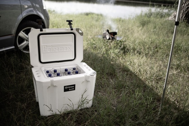 Für das Draussen-Kochen ist eine unabhängige Versorgung mit Lebensmitteln unverzichtbar. Die doppelwandige und hohlraumisolierte Petromax Kühlbox garantiert dabei zuverlässige Unterstützung. Die Petromax Kühlboxen der kx-Serie halten Eis für bis zu 12 Tage gekühlt. Das Ultra-Passivkühlsystem benötigt weder Strom noch andere Energiequellen und wird lediglich mit handelsüblichem Eis, Kühlakkus oder mit Trockeneis betrieben. Mit 25 l Fassungsvermögen bietet die kx25 dabei auch ausreichend Stauraum. Grosser Vorteil: Die Innenmasse sind so angelegt, dass entweder 24 x 0,33 l Dosen oder wahlweise bis zu 12 x 1 l Flaschen aufrechtstehend transportiert werden können.