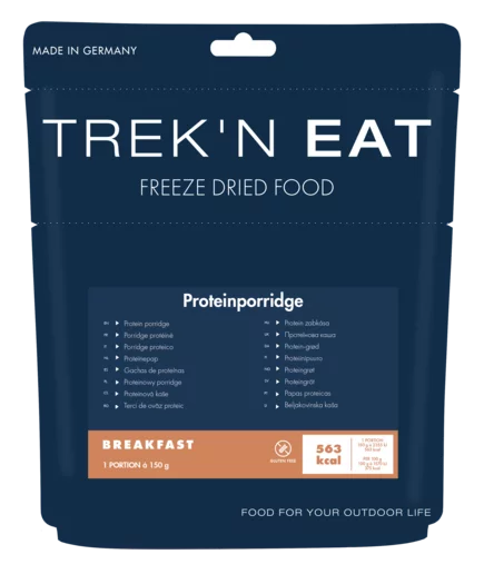Nicht ohne mein Porridge! Der gesunde Start in den Tag aus der britischen Küche hat jetzt auch seinen festen Platz im Trek´n Eat Sortiment. Das Proteinporridge aus glutenfreien Haferflocken, in Zusammenspiel mit der Süße von Apfelstücken und einem Hauch von Zimt, lässt jedem Outdoor-Liebhaber das Wasser im Munde zusammenlaufen. Einfach kaltes oder heißes Wasser direkt in den Beutel gießen, umrühren und ziehen lassen. Im Nu ist das leckere Frühstück fertig!