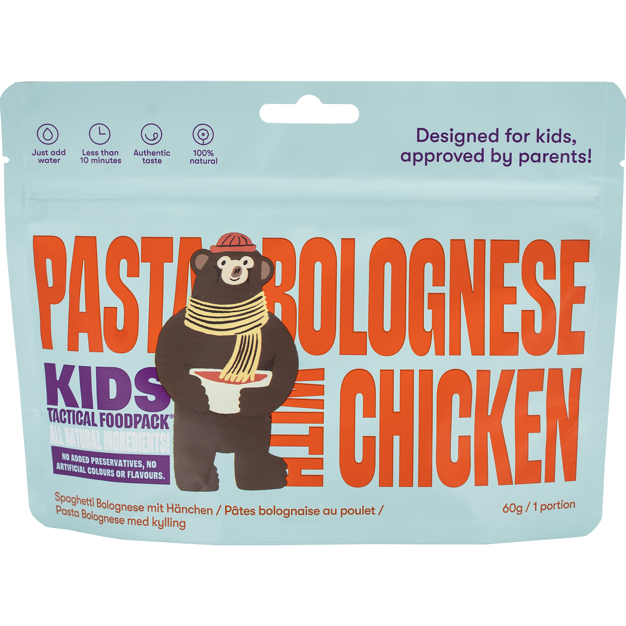 Produktinformationen "Tactical Foodpack Kids - Pasta Bolognese with Chicken (Pasta Bolognese mit Hähnchen)"