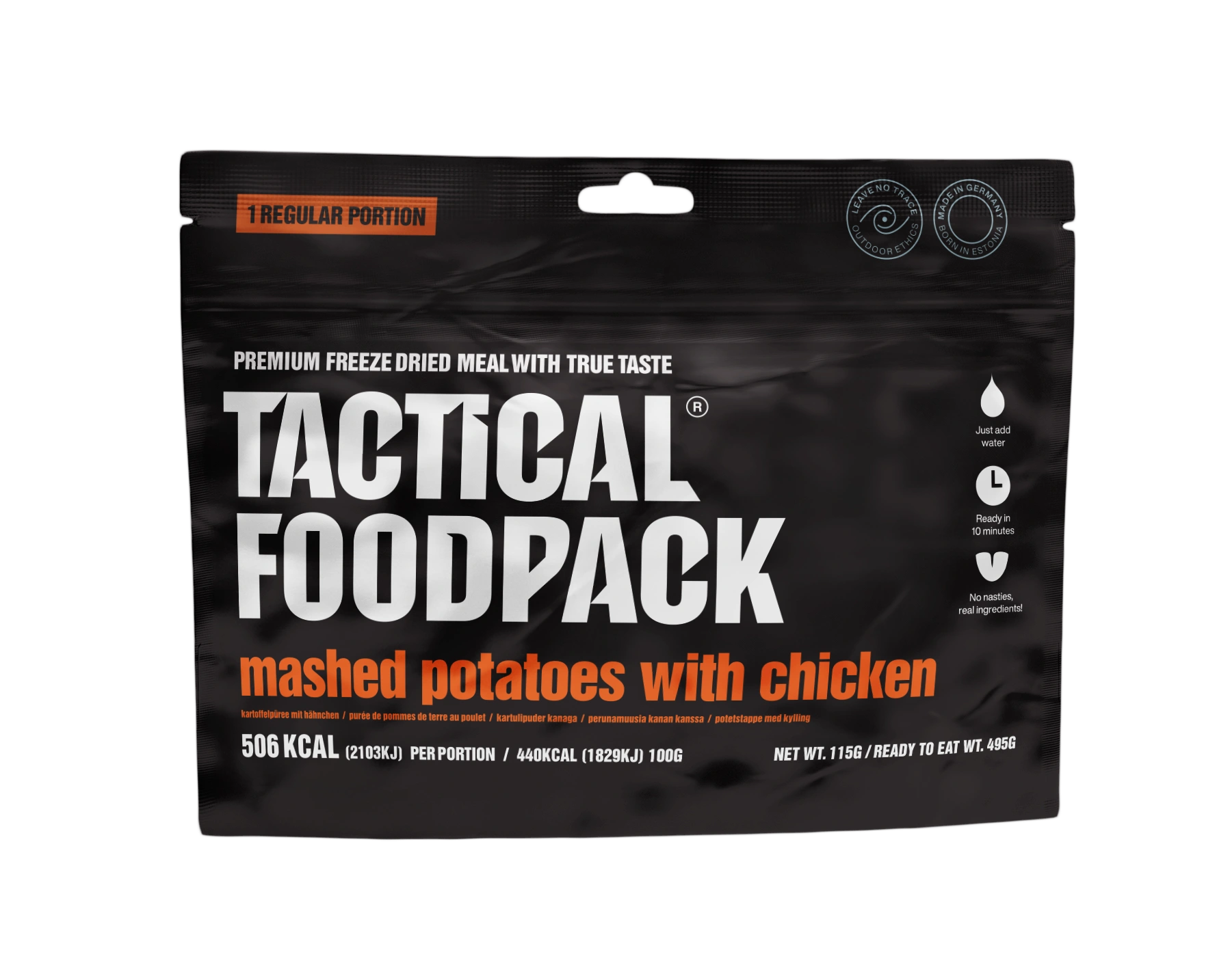 Die Mahlzeiten von Tactical Foodpack wurden ursprünglich für Spezialeinheiten entwickelt. Dank der hohen Nährwerte und der einfachen Zubereitung liefern die Foodpacks auch unter extremen Bedingungen eine vollwertige Mahlzeit. Aufgrund des speziellen Produktionsverfahrens, bei dem die Gerichte gefriergetrocknet werden, sind die Speisen mehrere Jahre lang haltbar. Im Trocknungsprozess wird den Zutaten das Wasser gänzlich entzogen, ohne dass die enthaltenen Vitamine und Nährstoffe zerstört werden. Da weder Konservierungsmittel noch Geschmacksverstärker oder Regulatoren beigefügt werden, überzeugen die Tactical Foodpacks mit ihrem unverfälschten Geschmack.