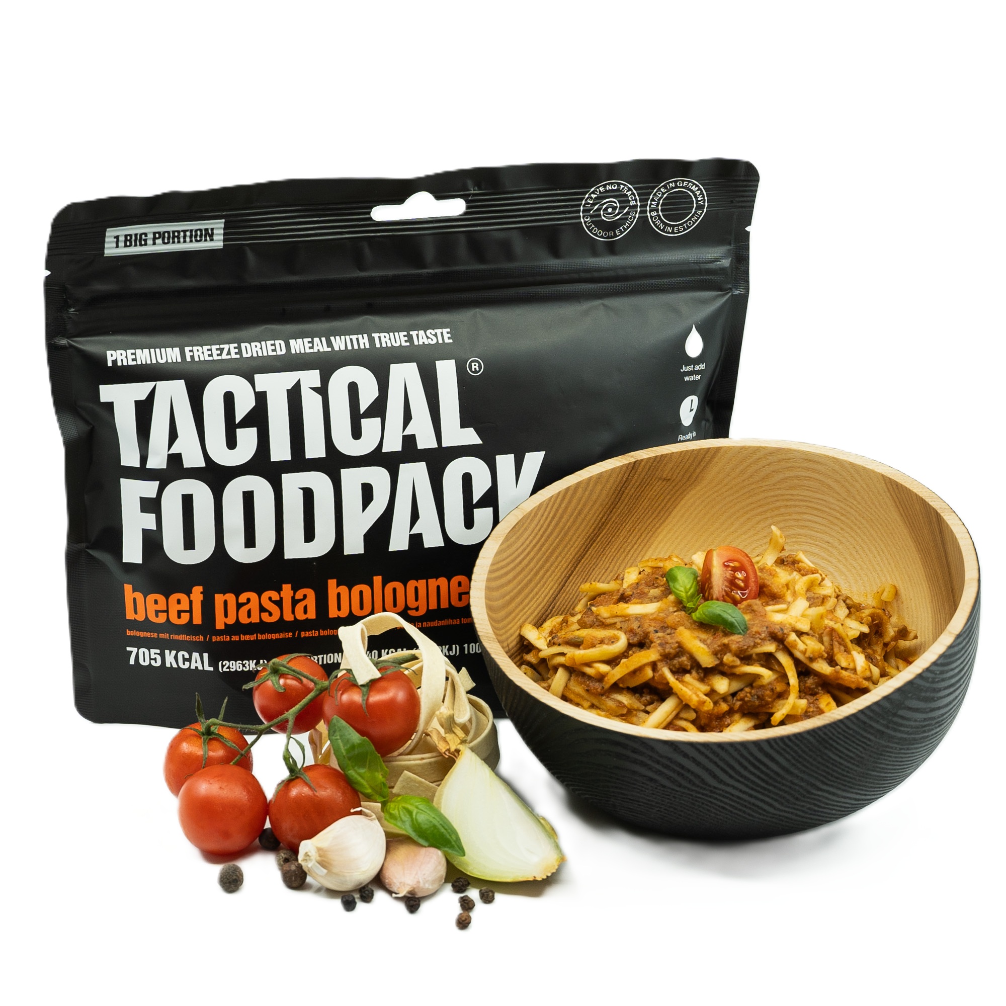 Die Mahlzeiten von Tactical Foodpack wurden ursprünglich für Spezialeinheiten entwickelt. Dank der hohen Nährwerte und der einfachen Zubereitung liefern die Foodpacks auch unter extremen Bedingungen eine vollwertige Mahlzeit. Aufgrund des speziellen Produktionsverfahrens, bei dem die Gerichte gefriergetrocknet werden, sind die Speisen mehrere Jahre lang haltbar. Im Trocknungsprozess wird den Zutaten das Wasser gänzlich entzogen, ohne dass die enthaltenen Vitamine und Nährstoffe zerstört werden. Da weder Konservierungsmittel noch Geschmacksverstärker oder Regulatoren beigefügt werden, überzeugen die Tactical Foodpacks mit ihrem unverfälschten Geschmack.