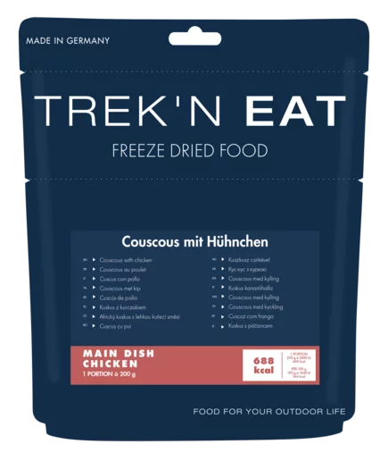 Mit diesem neuen Trek'n Eat Gericht führt die kulinarische Reise in den Maghreb. Das köstliche Couscous mit Hühnchen wartet darauf, Outdoor-Fans abends gemütlich um das Feuer zu versammeln. Wie alle Trek‘n Eat Gerichte enthält auch das Couscous weder zugesetzte Konservierungsstoffe noch zugesetzte Geschmacksverstärker. Das Couscous gibt es im wiederverschliessbaren Standbeutel mit Fülllinie. Alle Trek’n Eat Gerichte sind 3 Jahre haltbar. Trek’n Eat wird von all denjenigen geschätzt, die Wert legen auf einfache Zubereitung, authentischen Geschmack, geringes Transportgewicht und Brennstoffersparnis beim Kochen unterwegs.