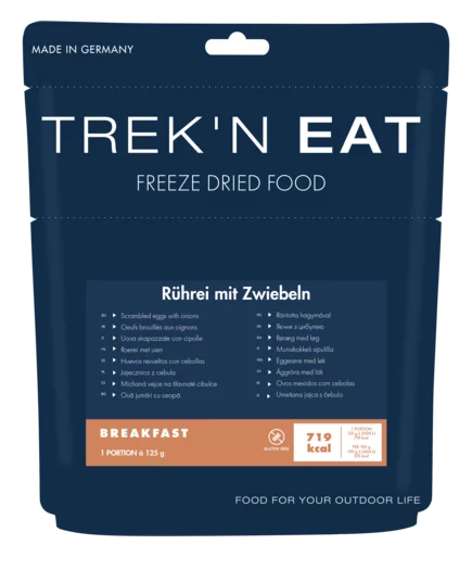 Um auf der ganz sicheren Frühstücksseite zu sein, darf das obligatorische Frühstücksei natürlich nicht fehlen. Schnell ist das Trek’n Eat Rührei mit Zwiebeln auf den Tisch gezaubert und komplettiert jeden Start in den Tag. Klein gewürfelte Tomaten, feine Kräuter und Zwiebeln vervollständigen das Gourmeterlebnis am Morgen. Das Trek’n Eat Rührei mit Zwiebeln verspricht einen hohen Gute-Laune-Faktor, denn schliesslich ist das Frühstück die wichtigste Mahlzeit des Tages und bei der sollte es an nichts mangeln.