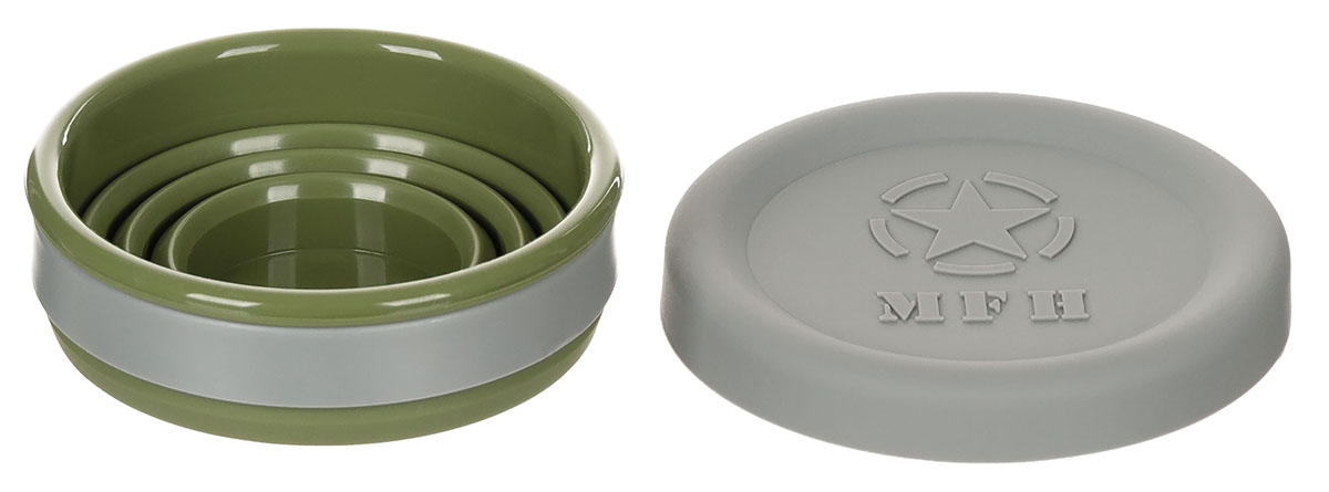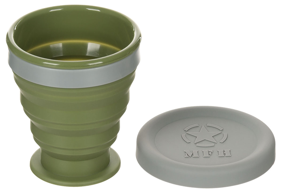 Produktinformationen "Faltbecher, mit Deckel, Silikon, oliv, 200 ml"