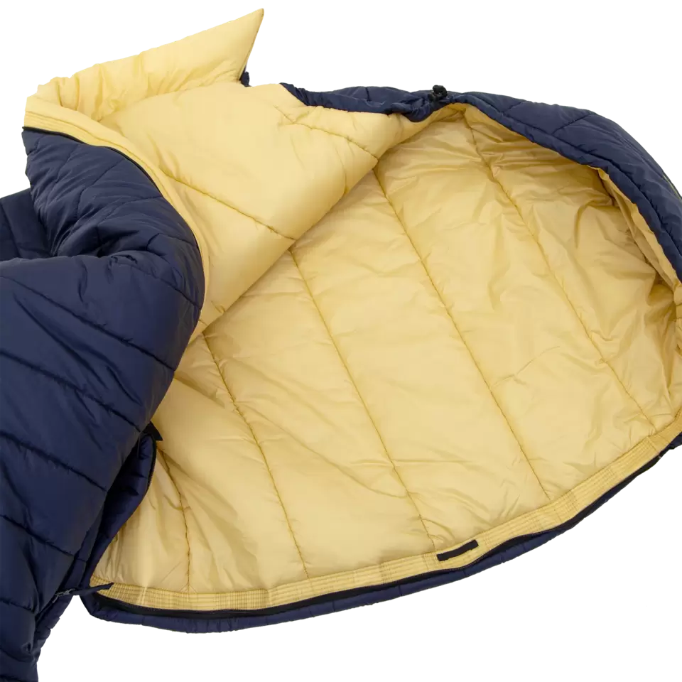 Der Young Hero hat eine Länge von 155 cm und kann durch ein „Mitwachssystem“ im Fußbereich auf 185 cm verlängert werden. Durch das wasserabweisende Shelltex Außenmaterial und unserer einzigartigen G-LOFT® Füllung, ist der Young Hero feuchtigkeitsunempfindlich. Deshalb kann man damit ohne Zelt die Nacht im Freien verbringen.