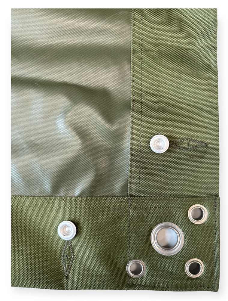 Reproduktion der beliebten Zelteinheit 64 der Schweizer Armee. Die Firma welche uns diese Armeeblachen liefert, war auch für die Produktion der offiziellen Zelteinheit 64 der Schweizer Armee verantwortlich. Aus diesem Grund kann diese Blache unter anderem mit den original Knöpfen punkten, welche man vom Original her kennt.