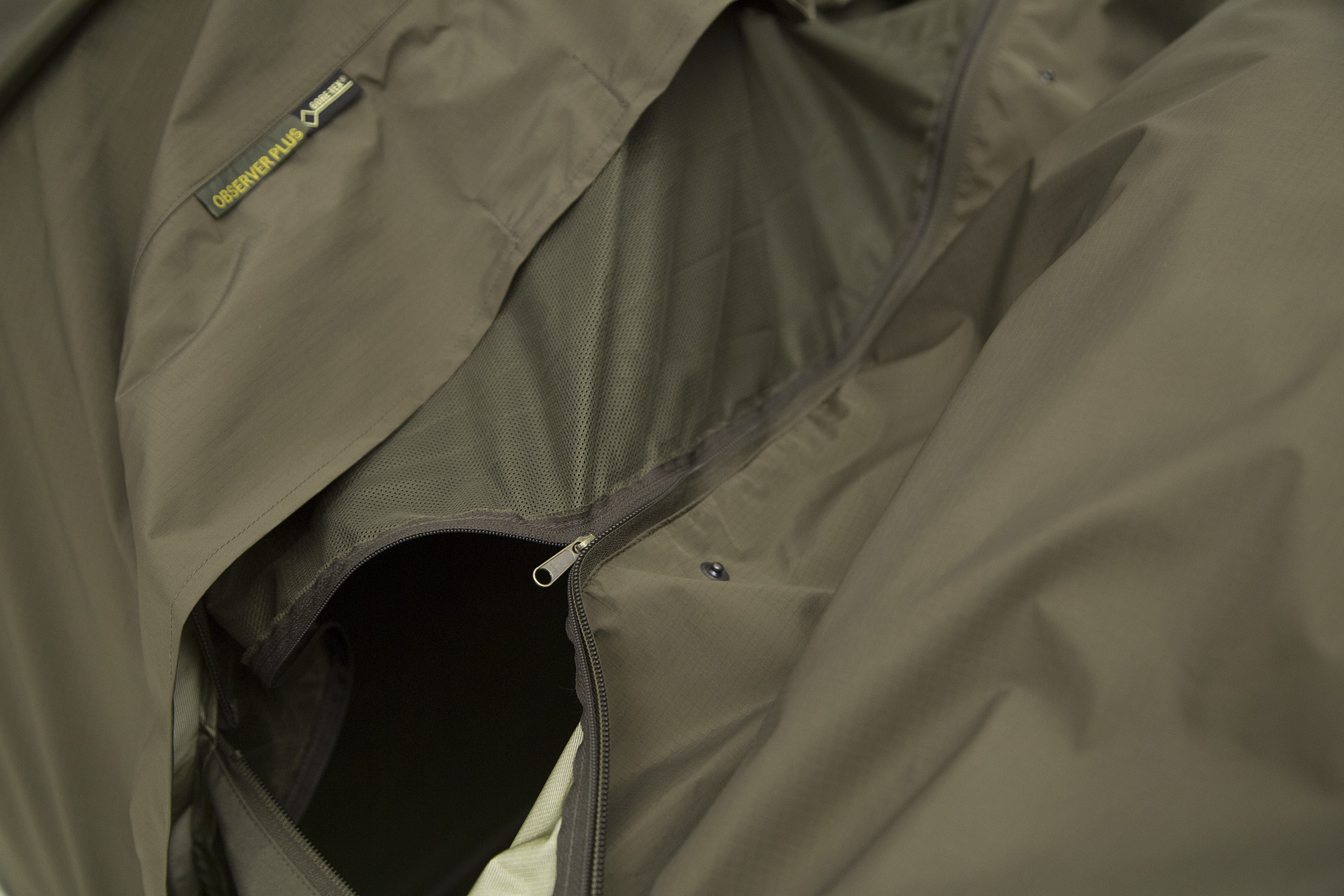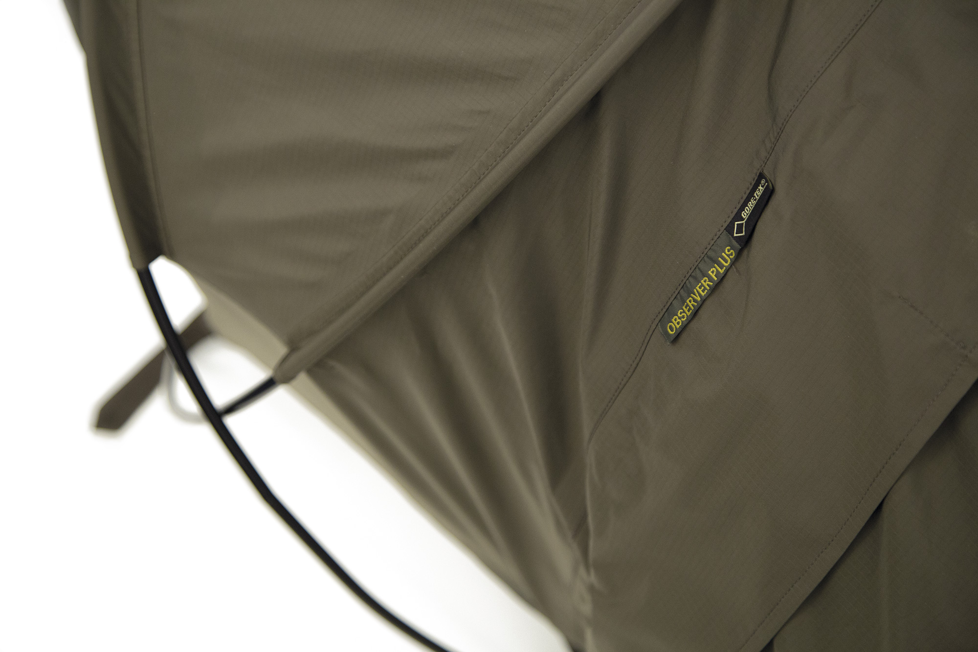 Das perfekte Biwakzelt mit selbststehender Doppel-Gestänge-Unterstützung. Die beiden kreisförmigen Zeltstangen formen eine Art Kuppel am Kopfende, die für den Anwender genügend Platz bietet, um die Ausrüstung unterzubringen. Der Observer Plus verfügt über eine leicht abfallende Linienführung vom Kopfbereich hin bis zum Fußende. Die L-förmige Öffnung macht den Ein- und Ausstieg bequem, geschlossen wird das Biwakzelt durch zwei Reißverschlüsse. Die Vorderseite ermöglicht einen Beobachtungsbereich von 180° und kann bei schlechtem Wetter ganz geschlossen werden. Ein Gewehr und/oder Teleskop kann durch den freibleibenden Beobachtungsschlitz trotzdem noch in Position gebracht werden. Sowohl der Beobachtungsschlitz, als auch die Eingangsöffnung sind mit einem Moskitonetz ausgestattet. Durch fünf integrierte Schlaufen auf der Rückseite kann die Isoliermatte fixiert werden.