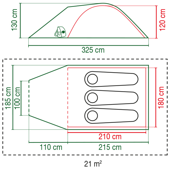 Besonderen Komfort erhält das Zelt durch den wasserdichten Boden sowie die großen Fenster im Eingangsbereich, das auch bei schlechtem Wetter ausreichend Licht einlässt.