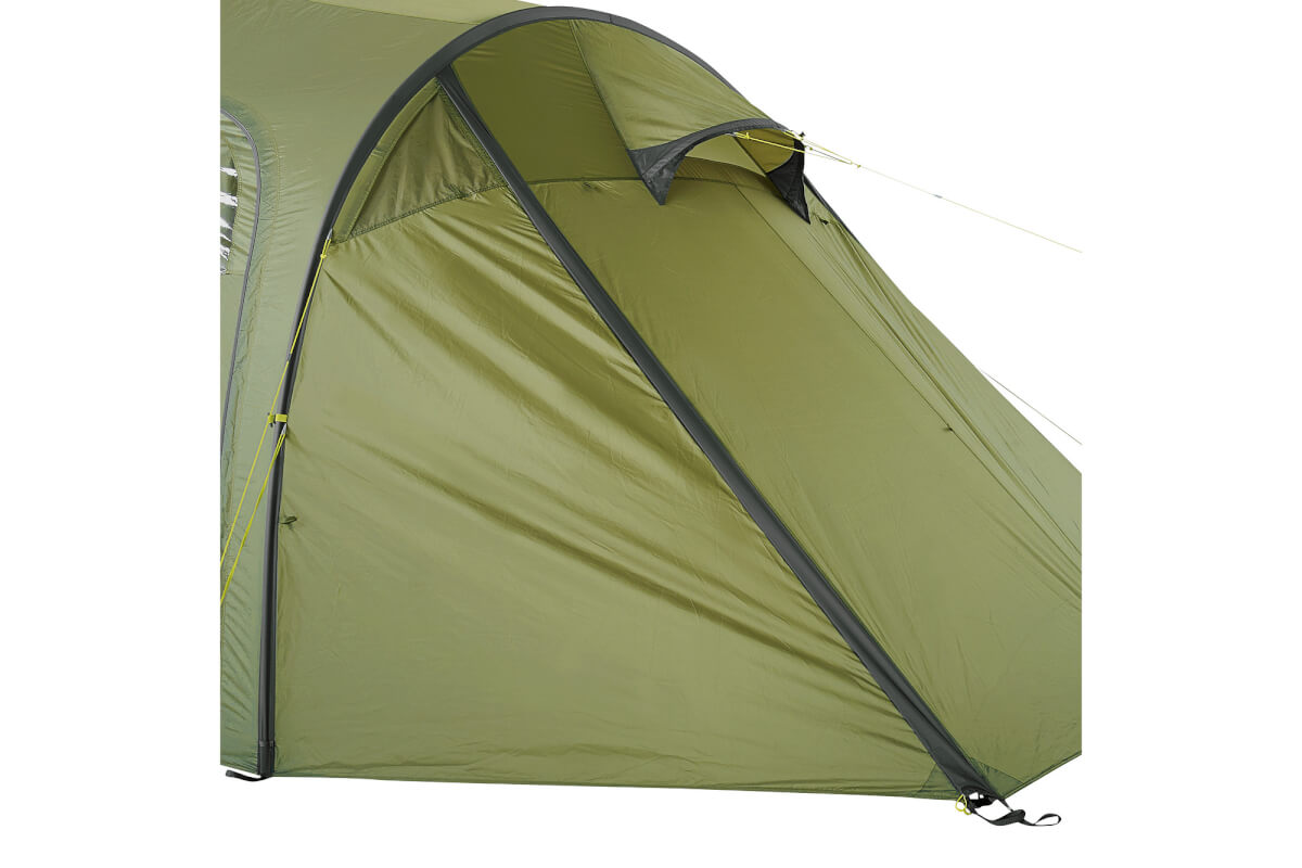 Das Tatonka Family Camp wird mit drei Gestängebögen aus hochwertigem, bruchfestem Aluminium aufgestellt. Anschließend wird das Innenzelt eingehängt. Mit etwas Übung lassen sich Außen- und Innenzelt aber auch in einem Schritt gemeinsam aufstellen.