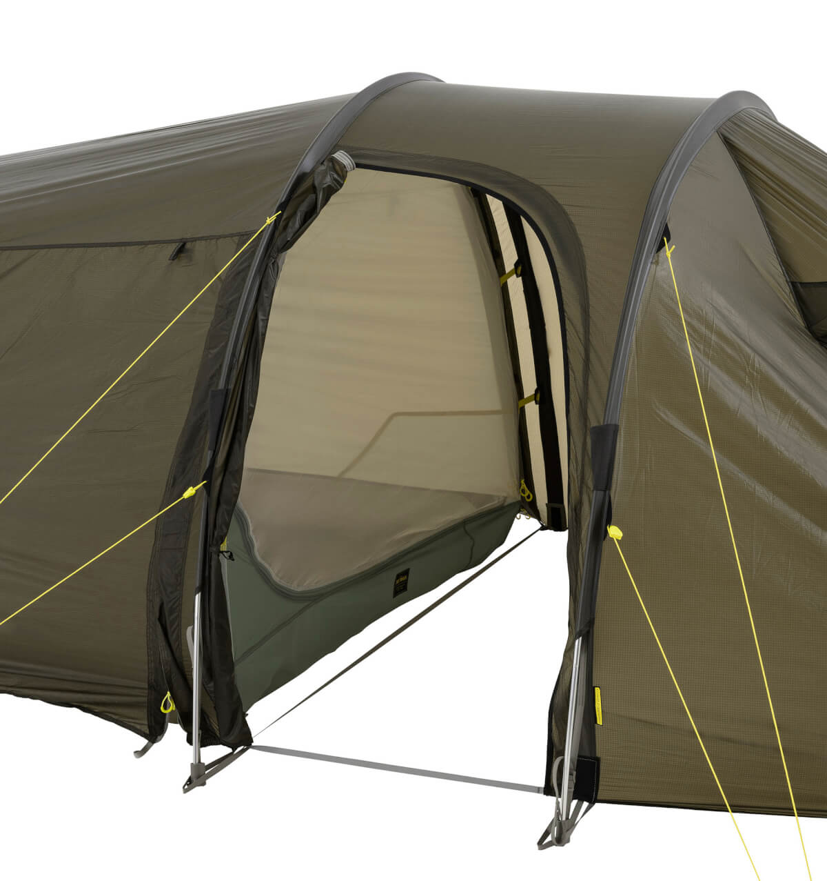 Beim Grönland 2 Vent LT lässt sich das Außenzelt an beiden Längsseiten komplett hochrollen, so ist bei warmen Temperaturen eine hervorragende Belüftung gewährleistet. Das Innenzelt aus leichtem Netzmaterial schützt dabei zuverlässig vor Insekten. Das Zelt bietet einen Seiteneingang mit einer geräumigen Apsis für die Ausrüstung.