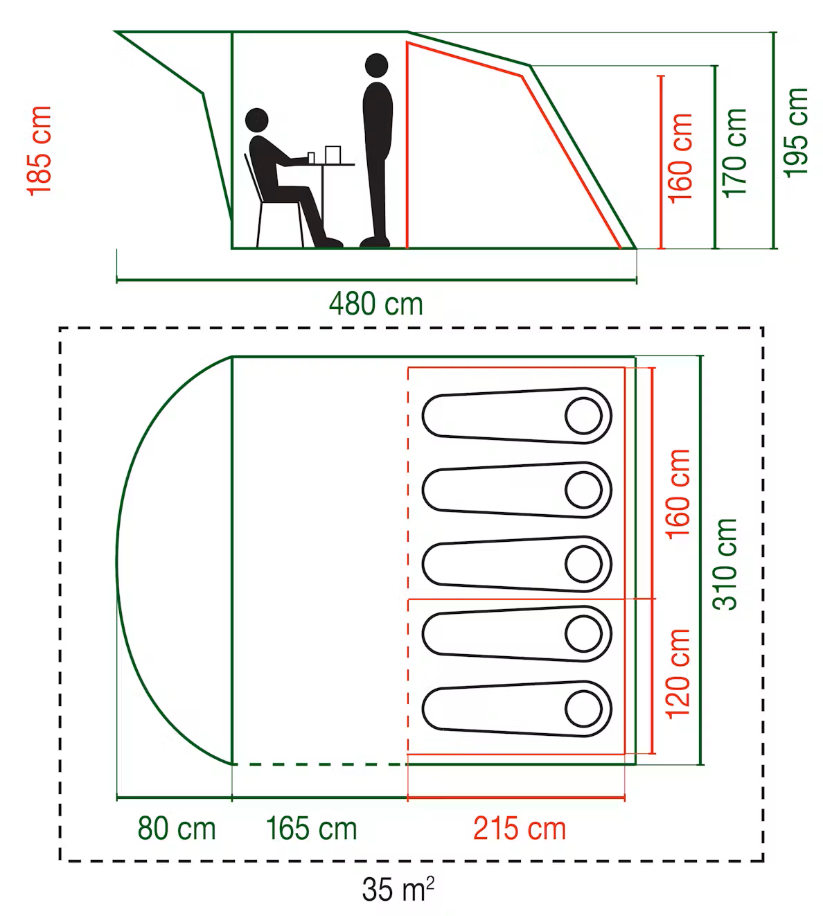 Stehhöhe - Mit einer Innenhöhe von fast 2 Metern können Sie bequem im Wohnbereich des Zelts stehen