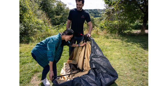 - FastPitch Technologie: Dank der innovativen Stangenkonstruktion, die bereits mit dem Zelt verbunden ist, ist dieses in nur 2 Minuten durch eine Person aufgebaut