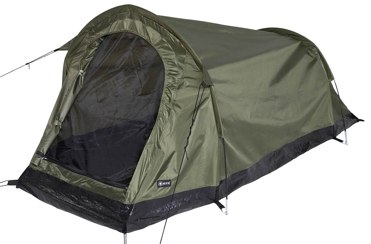 einwandige Konstruktion Eingang mit Moskitonetz und Reissverschluss Boden aus trittfestem, robustem PE-Gewebe Gestänge aus 7 mm Fiberglas inklusive Stahl-Heringe und Spannseile Transportbeutel mit Tragegriff Wassersäule: 2000 mm Packmass: ca. 58 x 11 x 11 cm (L x B x H) Masse: ca. 220 x 130 x 100 cm (L x B x H) Gewicht: ca. 1,6 kg