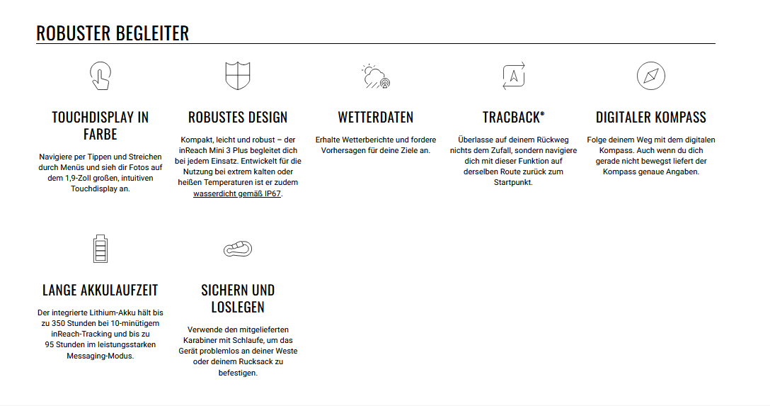 | Austausch von Positionen mit anderem inReach-Gerät | ✓ |