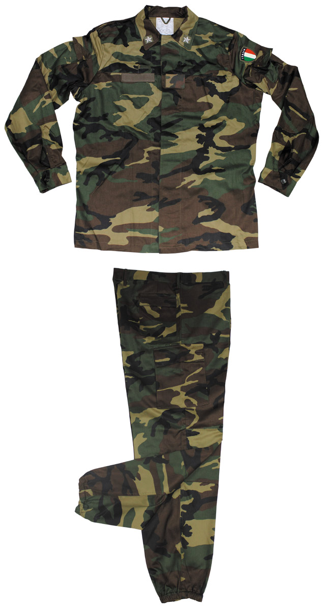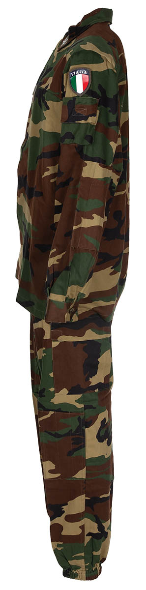 mimetico Roma 90 tarn Jacke: 2 Innentaschen mit Klett, doppelte Ellbogen, verstellbarer Ärmelbund mit Knöpfen, 2 kleine Ärmeltaschen, 2 Klettaufnahmen auf Brust, abgedeckte Knopfleiste vorne Hose: 2 Oberschenkeltaschen mit Klett und RV, 2 Gesäss-Pattentaschen mit Klett, elastischer Beinabschluss, Kniebereich verstärkt, RV am Hosenschlitz