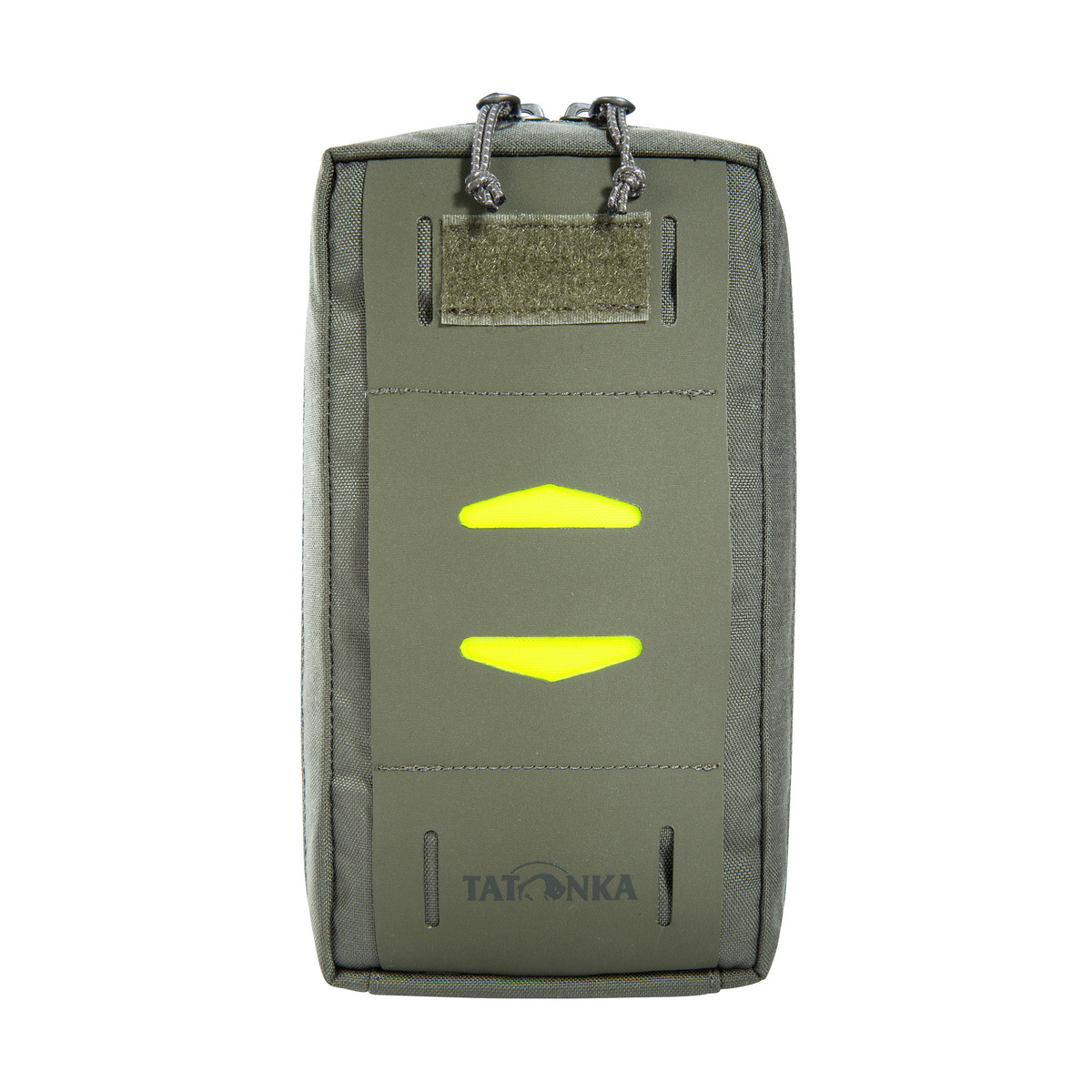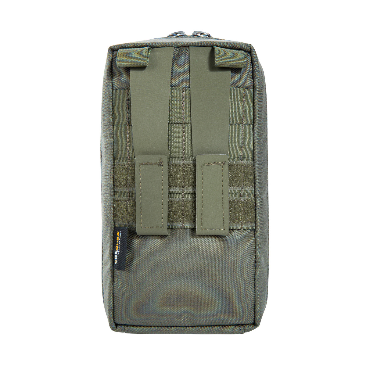 Die Tasche ist aus robustem Cordura gefertigt und kann auf dem modularen Befestigungssystem der Tatonka-Rucksäcke eingefädelt werden. Sie ist auch auf Molle-Systemen verwendbar.
