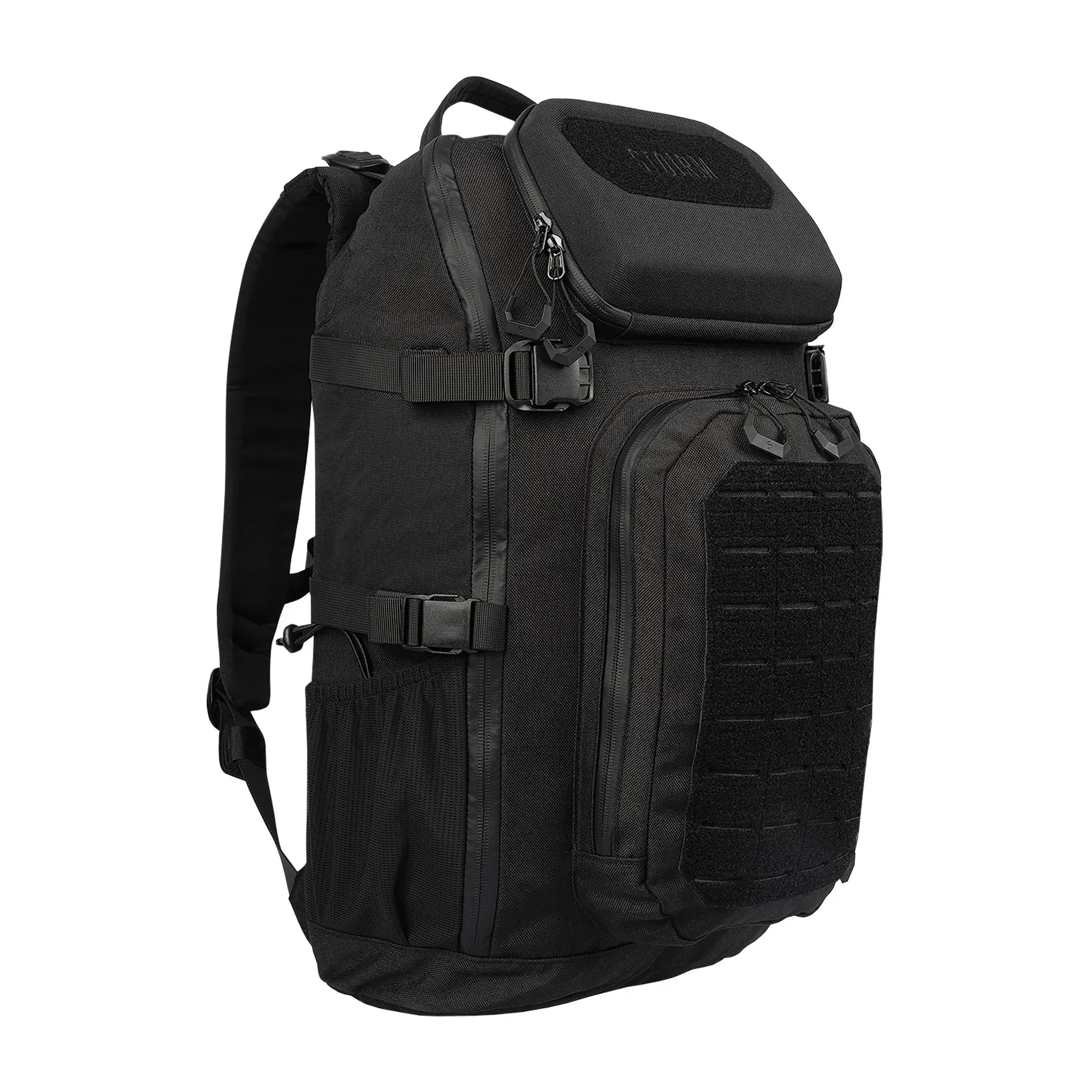 - MOLLE-Kompatibilität: An den vorderen Klett-MOLLE-Panels können zusätzliche Taschen, Pouches oder Ausrüstungsgegenstände angebracht werden, um den Rucksack individuell zu gestalten.