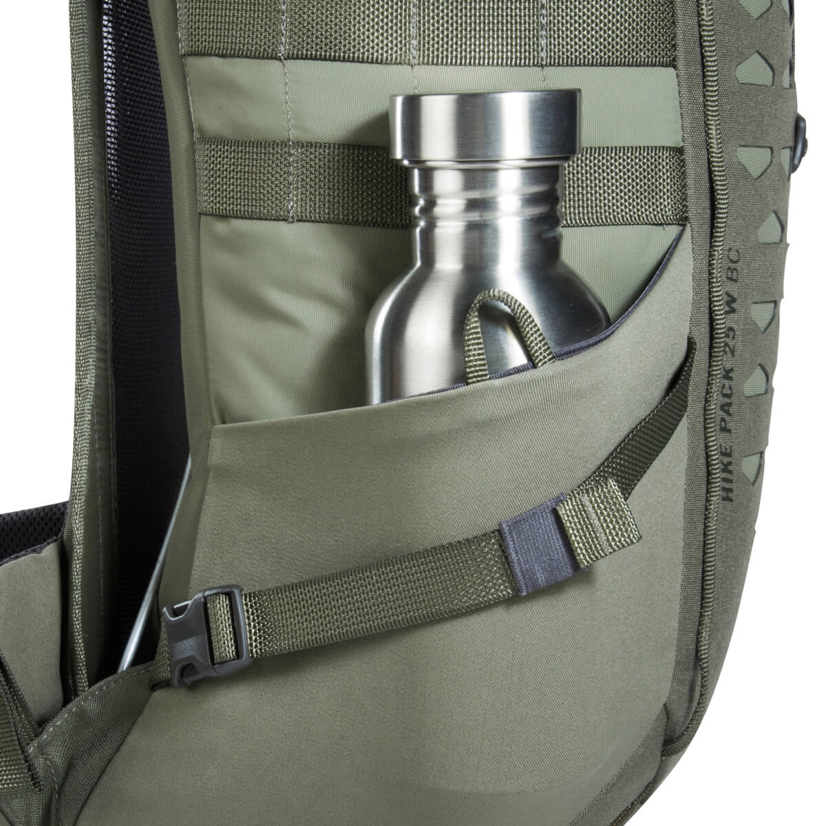 Der Hike Pack 25 Women BC ist ein Wanderrucksack, den wir speziell für Bushcraft-Liebhaberinnen entwickelt haben. Er ist aus robustem Cordura gefertigt und besitzt ein modulares, Molle-kompatibles Befestigungssystem auf der Front, an den Seiten und auf einer Hüftflosse. Somit lässt er sich nach individuellen Bedürfnissen mit Zusatztaschen (z.B. den Universal Pouches von Tatonka, Art. 3032, 3033, 3034, 3035) oder Ausrüstung ergänzen. Neben dem Hauptfach bietet der Rucksack ein Deckelfach und zwei Seitentaschen. Außerdem ist er mit einer Trinksystemvorbereitung inklusive Schlauchdurchlass und einer Wanderstockhalterung versehen. Eine olivfarbene Regenhülle gehört ebenfalls zur Ausstattung.