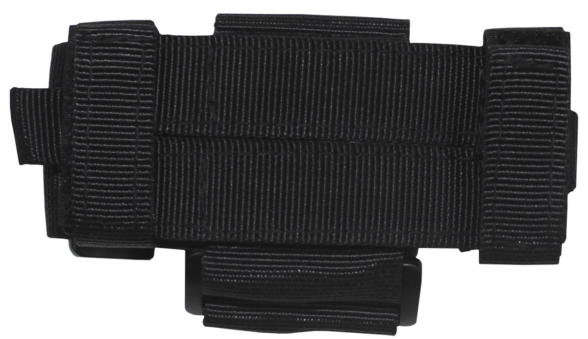 quer und längs tragbar höhen- und breitenverstellbar durch Klettverschlüsse 1 Klickverschluss vorne 2 Molle-Befestigungsschlaufen mit Klett hinten Verstellbereich: von minimal: ca. 11 x 5 x 3,5 cm (H x B x T) bis maximal: ca. 15 x 7,5 x 1,5 cm (H x B x T)