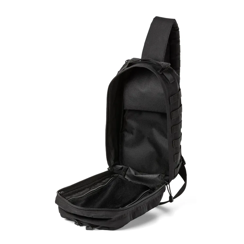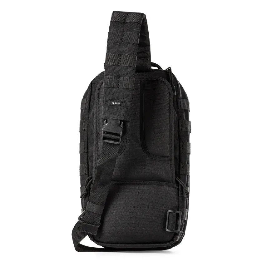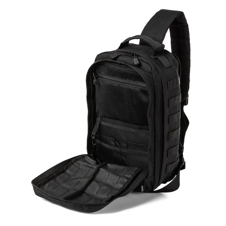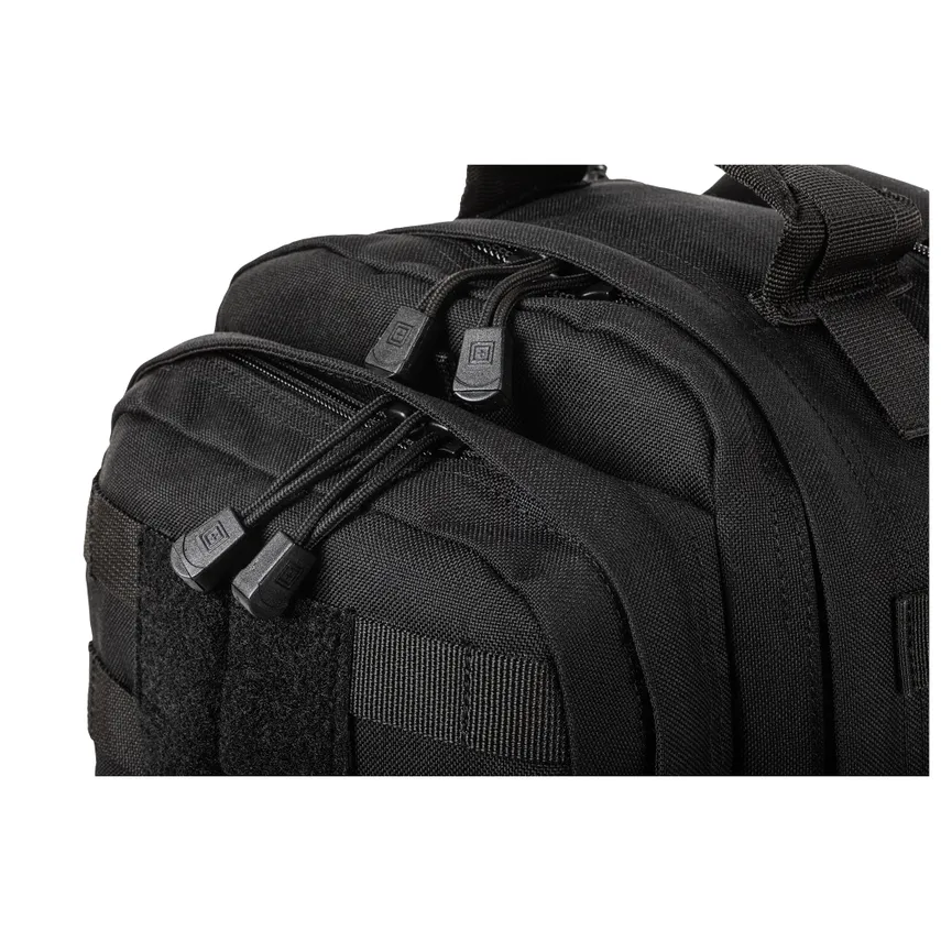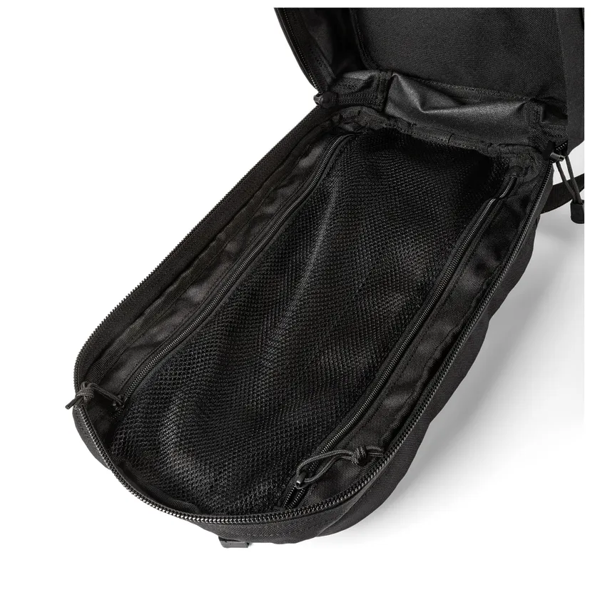 Eigenschaften - Das charakteristische CenterLine™-Design von 5.11 - Externes MOLLE-Gewebe an Vorder- und Seitenwänden - Beidhändiges Sling-Schultergurtsystem - MOLLE-System am Schultergurt - Strategisch positioniertes, verdecktes TacTec®-Pistolen-CCW-Fach mit abreissbarem Klettverschluss für sofortigen Zugriff - Kompatibel mit dem RUSH® Tier System zur Integration mit anderen RUSH® Taschen (separat erhältlich) - Grosse Vordertasche mit Innenverwaltung/Zubehörorganisation - Hauptfach mit Innentaschen - Mit Fleece gefütterte Brillentasche - Hintere Trinktasche mit Durchgangsöffnung - Flaggenaufnäher mit Klettverschluss - 1050D-Nylon