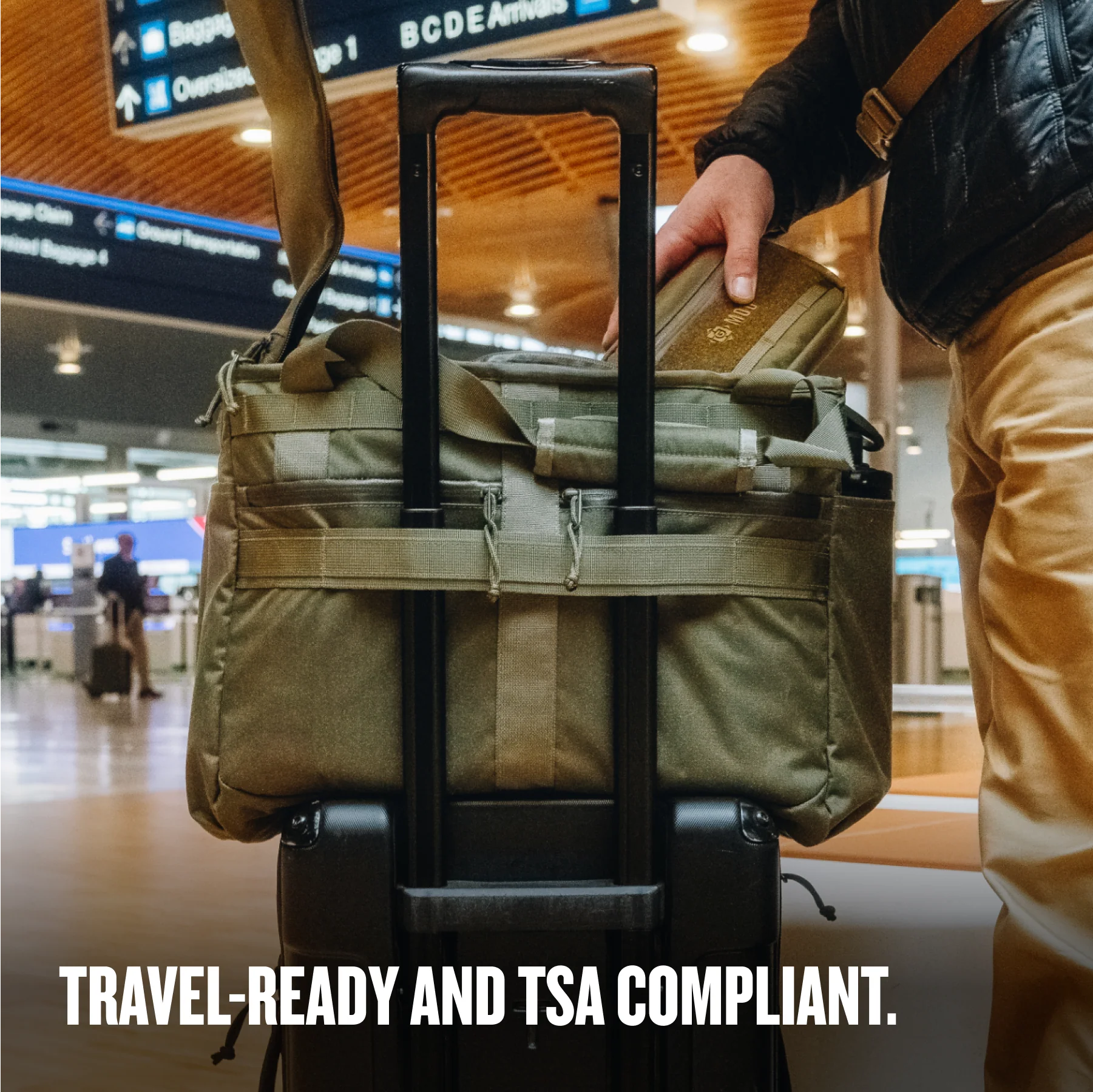 Magnetischer Tragegriff, abnehmbarer Schultergurt mit Anti-Rutsch-Polsterung und verstärkte Seitengriffe sorgen für Komfort beim Transport. Innen punktet die Tasche mit einem U-förmig zu öffnenden Hauptfach für maximalen Zugriff, isolierten Seitentaschen, Flaschenfächern mit Klettverschluss, einem gepolsterten 13"-Laptopfach und einem großen Meshfach mit Schlüsselclip. Die Mission Tote ist in den Grössen 58 L, 45 L und 32 L erhältlich und vollständig kompatibel mit dem G-Mod Pouch System™ – für maximale Vielseitigkeit unterwegs.