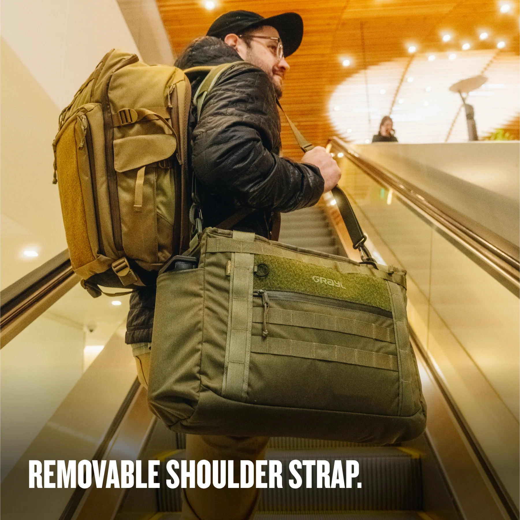 Die geräumige Front mit Klett- und MOLLE-Flächen ermöglicht eine individuelle Ausstattung mit G-Mod Zubehörtaschen. Hergestellt aus 100 % recyceltem Nylon, ausgestattet mit wasserabweisenden YKK® Aquaguard® Reissverschlüssen und hochwertiger Hardware, überzeugt die Tote durch ihre robuste Bauweise.