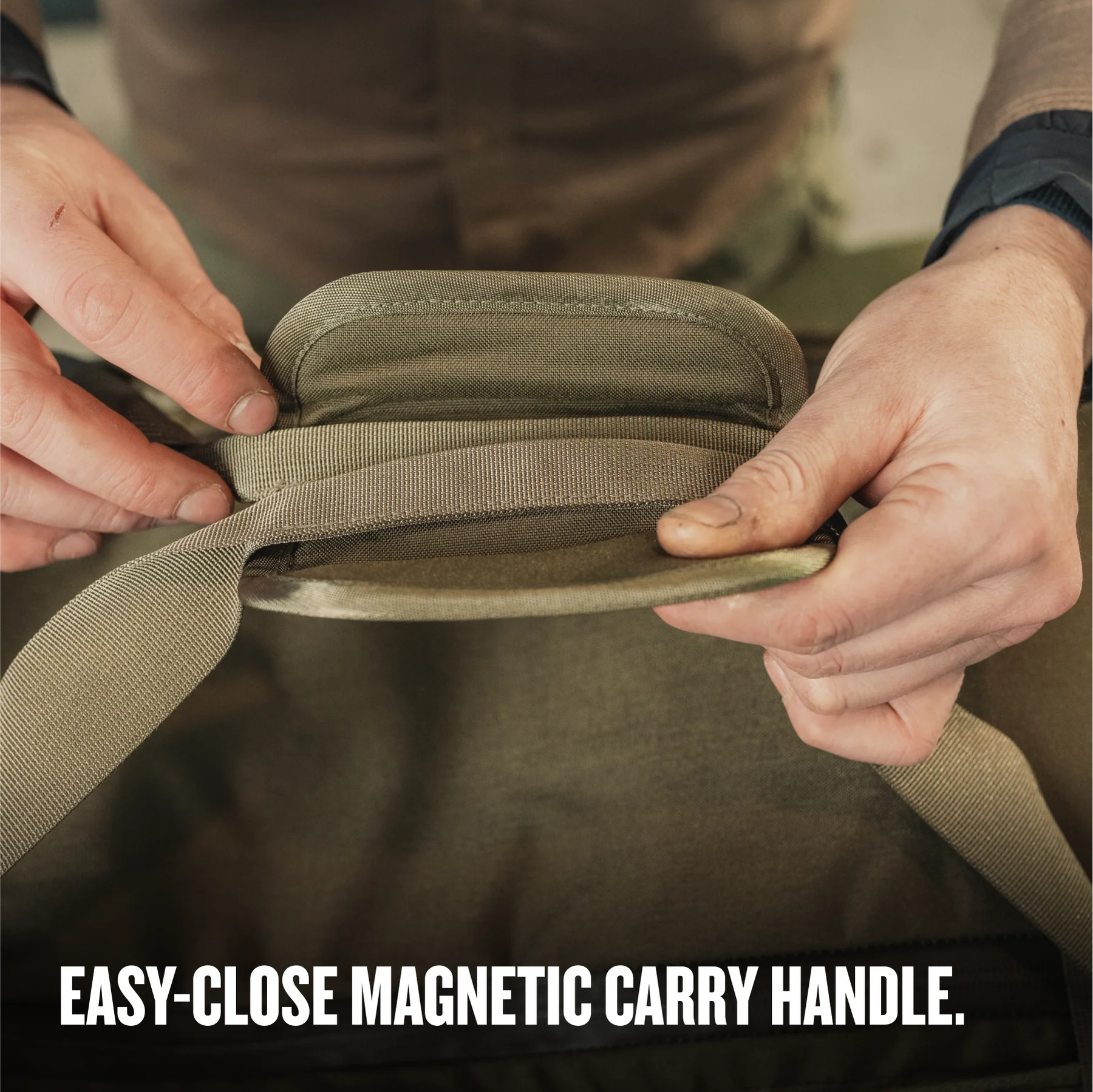 Die Mission Tote 58L ist das grösste Modell der Serie und wurde für ausgedehnte Overlanding Abenteuer und anspruchsvolle Expeditionen entwickelt. Mit grosszügigem Stauraum und durchdachter Organisation, darunter fünf Reissverschlussfächer, acht Innenfächer und erweiterbare Taschen für die Grayl® GeoPress. Die grosse Frontfläche mit MOLLE- und Klettzonen erlaubt die individuelle Erweiterung mit G-Mod Pod- und Flat Pouches. Gefertigt aus 100 % recyceltem Nylon, kombiniert mit wasserabweisenden YKK® Aquaguard® Reissverschlüssen und hochwertiger Hardware, trotzt diese Tasche jeder Herausforderung. Aussen sorgen ein magnetischer Tragegriff, ein abnehmbarer, gepolsterter Schultergurt sowie verstärkte Seitengriffe für vielseitige Trageoptionen. Im Inneren bietet die Tasche ein beeindruckendes 58-Liter-Hauptfach, isolierte Seitentaschen für die GeoPress, vier dehnbare Flaschenfächer mit Klettverschluss, ein gepolstertes Laptopfach für Geräte bis 13 Zoll und ein großes Meshfach mit Schlüsselclip. Die Mission Tote 58L ist voll kompatibel mit dem G-Mod Pouch System™ und damit die ultimative Transportlösung für grosse Touren. Verfügbar in 32 L, 45 L und 58 L.