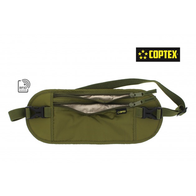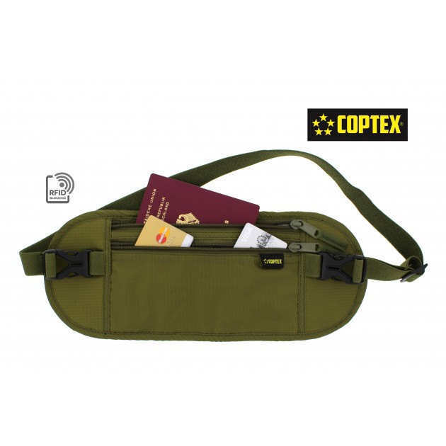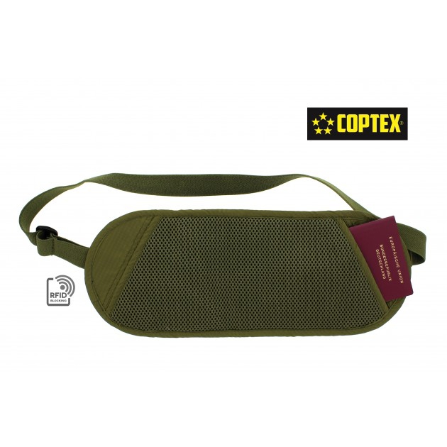 Mit dieser Bauchtasche aus wasserabweisendem Ripstop Nylon sichern Sie Ihre Reisedokumente und Ihre Wertsachen. Zwei große Außentaschen vorne und eine große Einschubtasche auf der Rückseite bieten ausreichend Platz. Das dünne RFID blockierende Innenmaterial schütz z.B. Ihre Kreditkarten vor dem Auslesen. Verstellbarer Stretchgurt mit Clipverschlüssen.